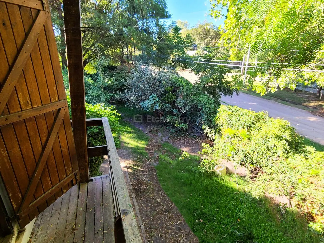 Ubicada en un terreno esquina, la casa se desarrolla sobre uno de los lados del padrón, con orientación norte hacia el resto del jardín arbolado, lo que le aporta excelente asoleamiento y un amplio espacio verde libre.