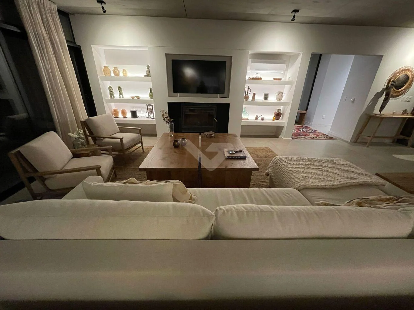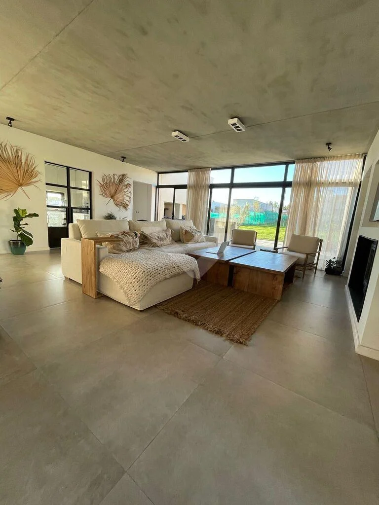 Living comedor amplio y luminoso con estufa a leña de alto rendimiento.