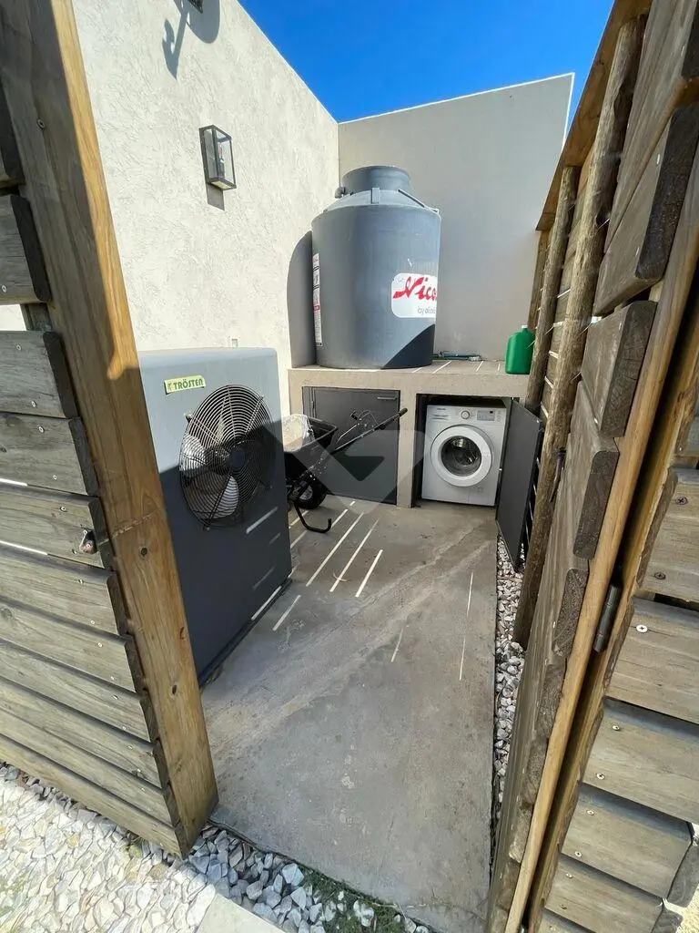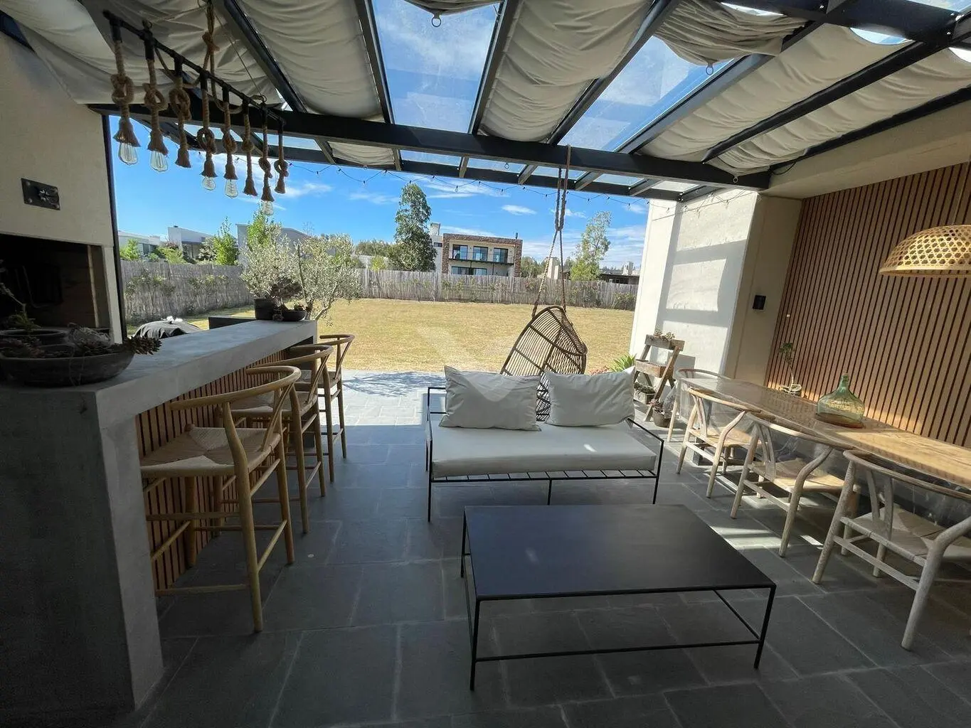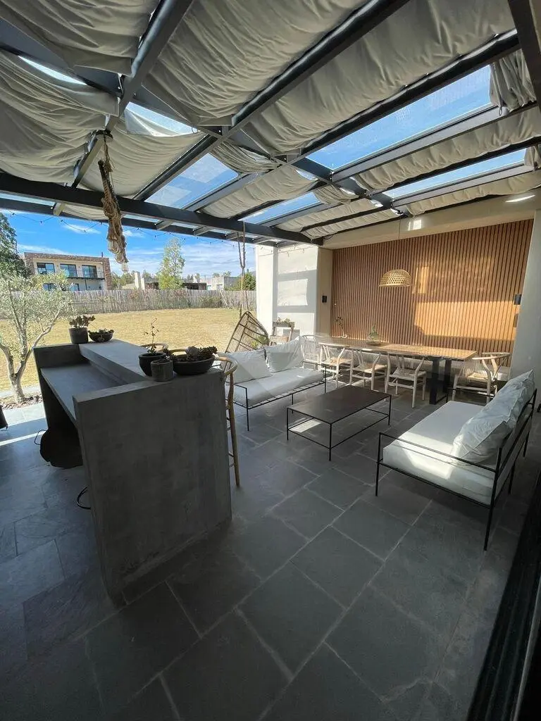 El parrillero esta en una pérgola techada tiene una barra y un lugar amplio para poner unos sillones, la orientación es al norte.