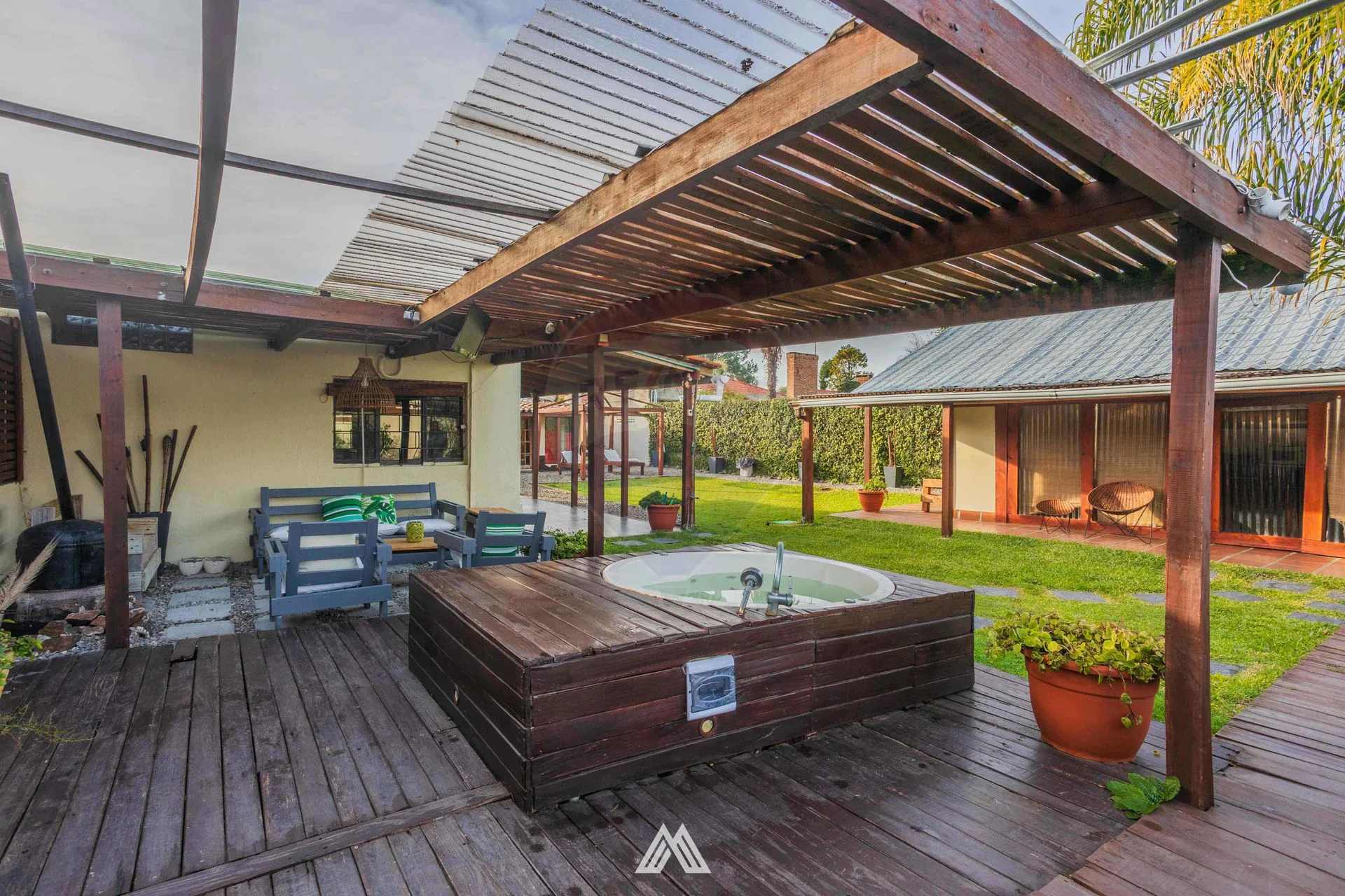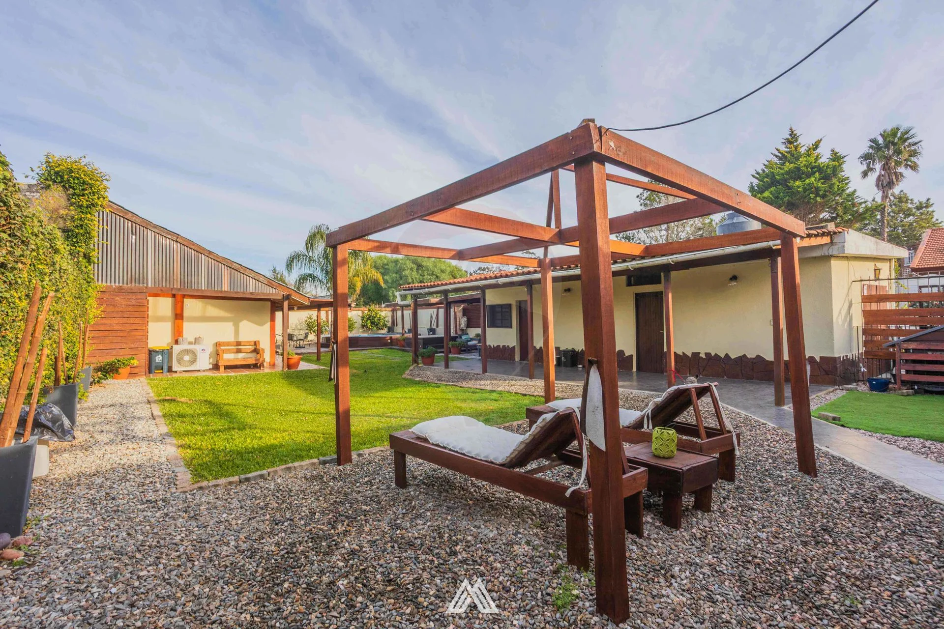 Corredor Responsable: - Contacto: Leonardo Figueroa Casa de estilo moderno, distribuida en una planta, en estado inmejorable, en muy lindo entorno, a 150 metros de la playa en PINARES, ATLÁNTIDA. Cuenta con 226 m2 edificados en un terreno de 784 m2 y orientación Este en la calle 3 B. Jardín frontal muy amplio y cuidado, ingreso principal, por el lateral donde se dispone de garaje y cochera de hasta 3 autos. Pasando la puerta principal, llegamos a un amplio living comedor formal con ventanales de piso a techo al frente y con un gran abanico de posibilidades programáticas por la buena iluminación, a la izquierda importante estufa a leña. Adentrándonos en el inmueble encontramos a un lado con el ingreso a la amplia cocina, mesada desayunador, de diseño contemporáneo en un altísimo nivel de calidad, buen gusto de los materiales. Desde la cocina accedemos a el área de estar, cuenta con parrillero, aberturas de piso a techo, que proveen un muy alto grado de iluminación natural, y una muy agradable vista al fondo verde. Por medio corredor de distribución llegamos a la habitación principal, que dispone de un vestidor, baño completo. Al otro sector de la planta cuenta con dos dormitorios más, y dos baños completos que atiende el resto de los dormitorios, una batería importante de placares a medida. En la parte posterior de la propiedad un importante jardín, con amplios espacios verdes, y una muy amplia barbacoa cerrada, acorde a la estética de la casa, con altillo y baño, que da la posibilidad de abrirse totalmente al espacio de piscina climatizada, solárium y yacuzzi. Dormitorio de servicio, y baño completo y adjunto al garaje, posee un quinto dormitorio o altillo, además de lavadero. Muros y verde perimetral. Rejas en todas las aberturas. Otros: Depósito de leña multiuso con acceso exterior. Terminaciones de excelente calidad en todo detalle, acompañado de buen gusto y buena disposición de los espacios. Calefacción de toda la casa por medio aires acondicionados en todas las habitaciones. Muy buen mantenimiento y cuidado de la propiedad. Buena distribución de los ambientes, amplios, cómodos y luminosos. Construcción sólida de los mejores materiales. Pronta para habitar. Posibilidad de cerramiento en piscina, para uso de todo el año. COMPARTIMOS CON TODOS LOS COLEGAS, SOLICITE SU VISITA. Cada Oficina es de propiedad, gestión y desarrollo independiente La presente publicación describe las características esenciales del inmueble, debiéndose consultar al responsable de la operación por la eventual actualización de las medidas, descripciones arquitectónicas y funcionales, servicios, impuestos, precios y demás información, cuyos valores son aproximados.