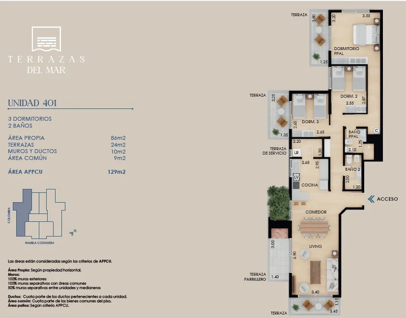 Venta de apartamento de 3 dormitorios y 2 baños en Terrazas del Mar, ubicado en la Rambla Costanera y Colombes, perfecta armonía entre el mar y la naturaleza, sobre la rambla a minutos de la ciudad.