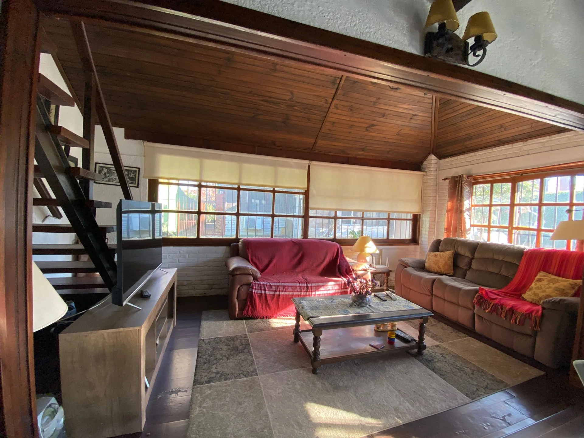· Entrada a gran living-comedor con ventanales y estufa a leña.