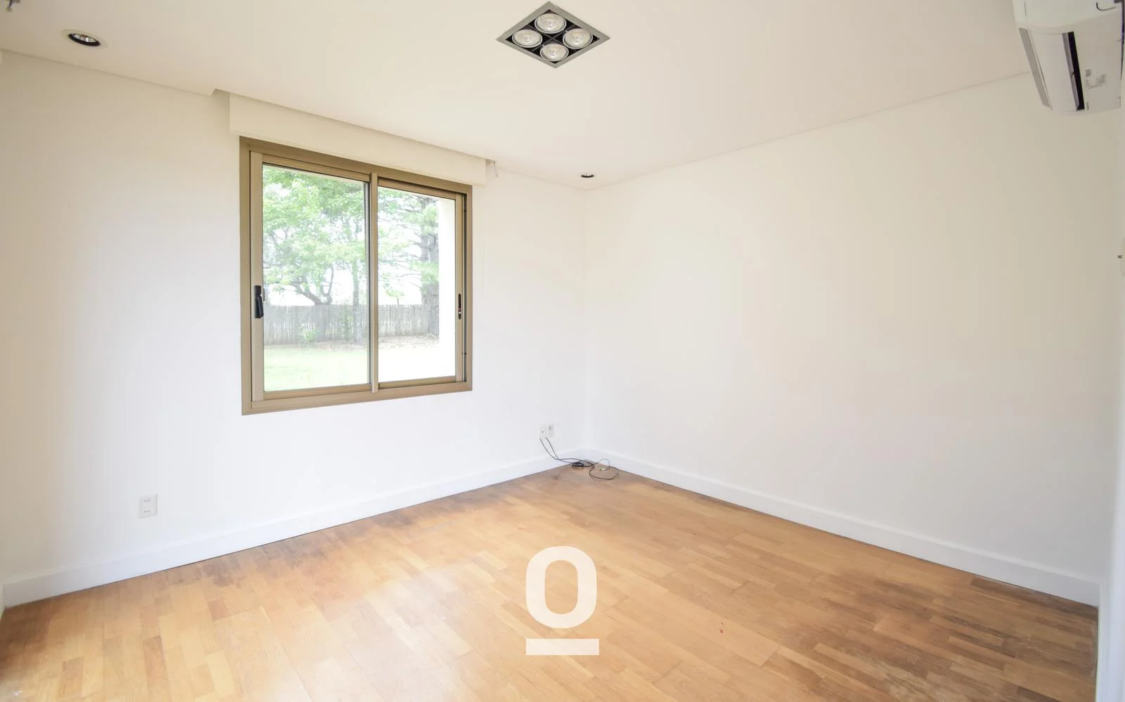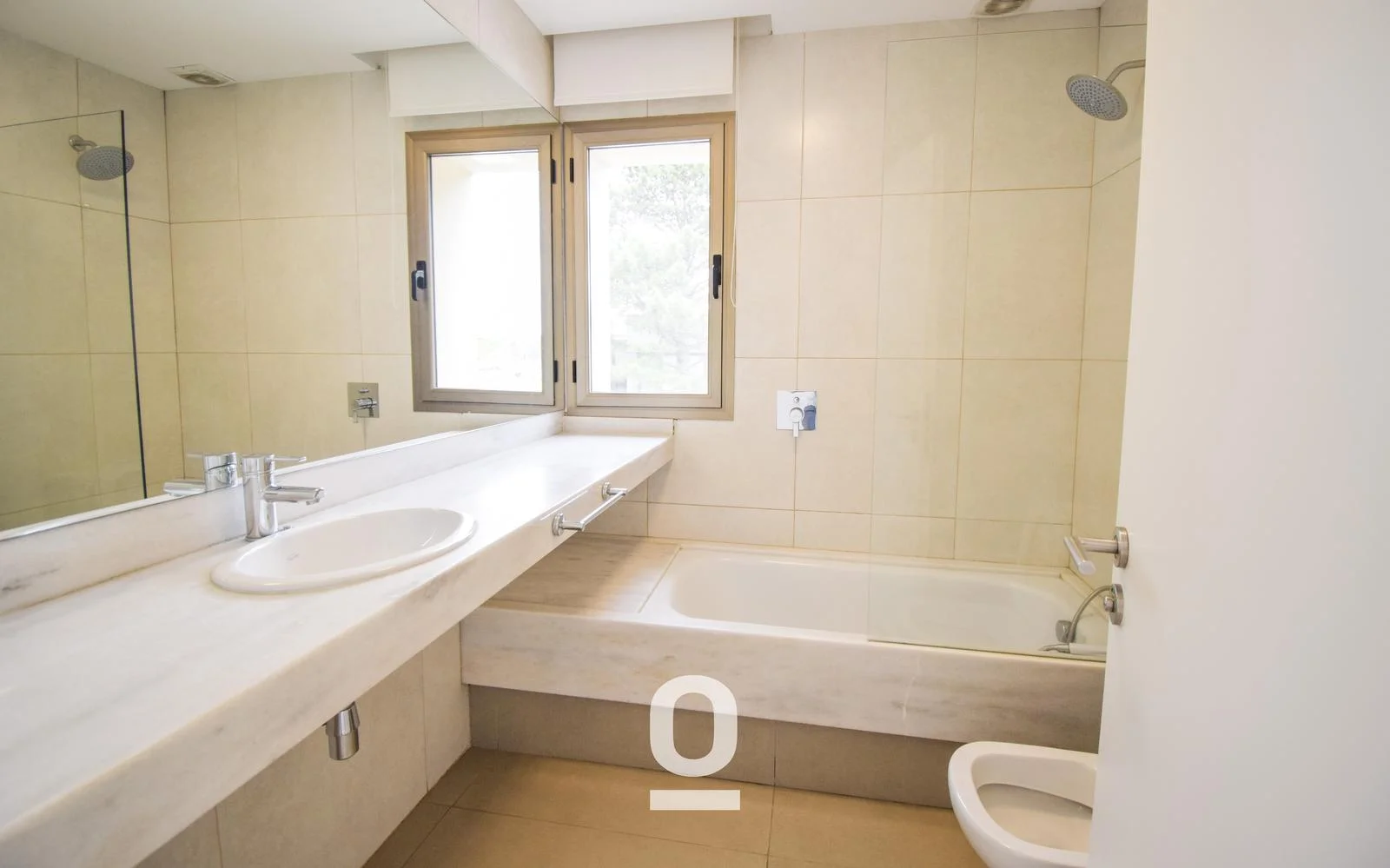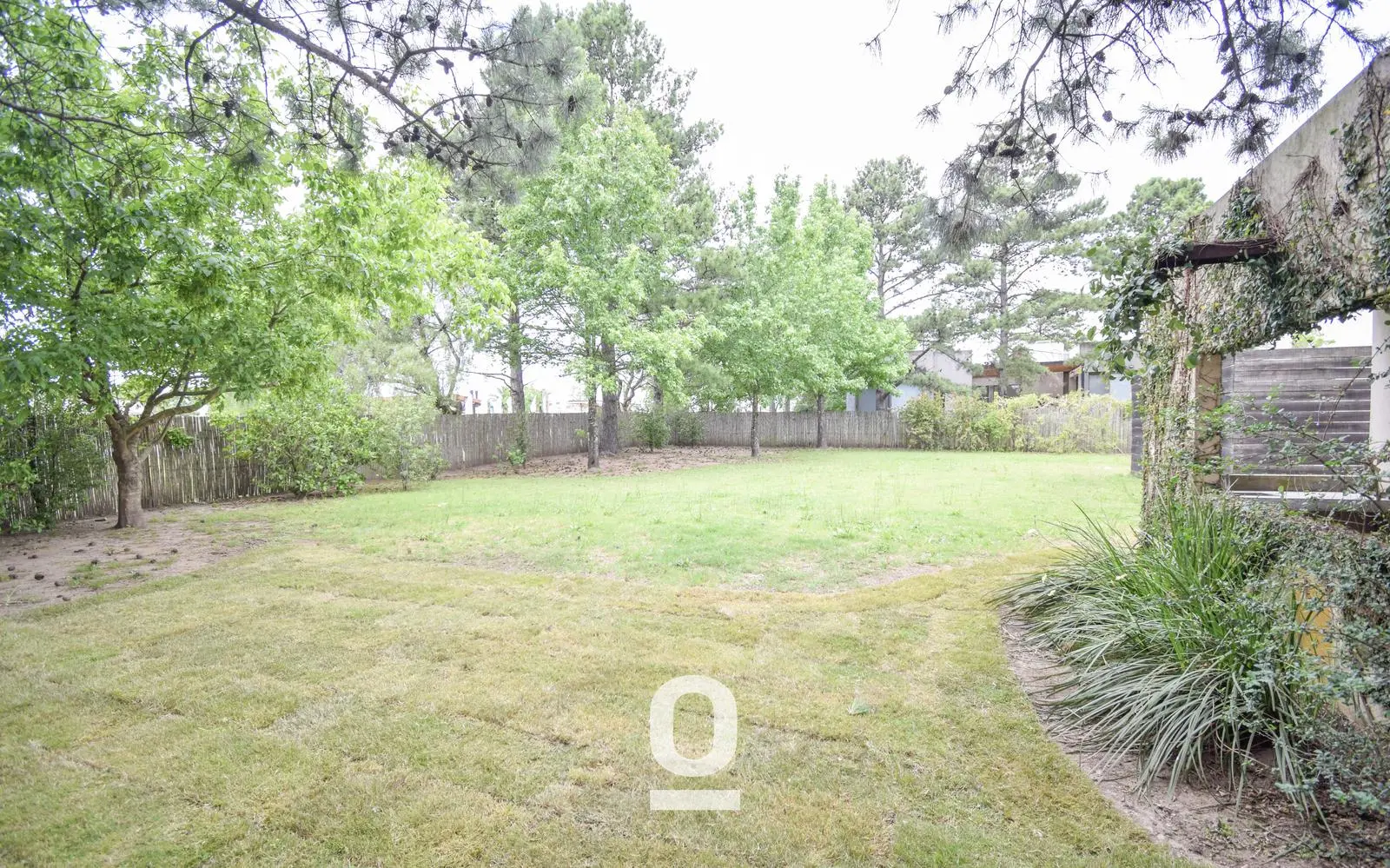 Lindo jardín con árboles, cochera techada para dos autos (lugar para estacionar más). En planta baja living/comedor con estufa a leña, cocina semi integrada con barra, servicio completo, toilette, AA, losa radiante a gas, estar y patio techado con parrillero.