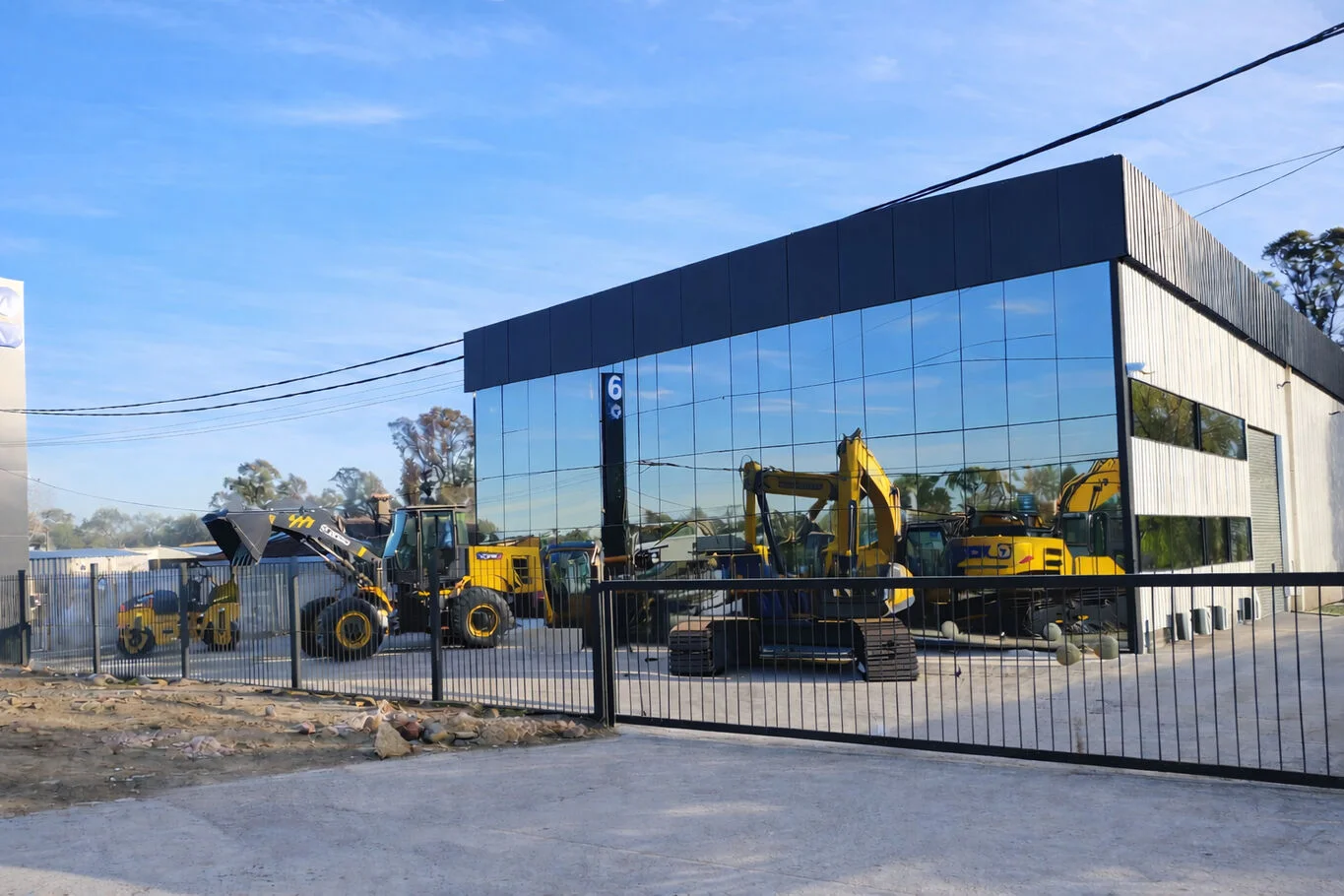 Fachada de galpón en curtain wall, que aporta presencia corporativa y excelente imagen institucional sobre ruta.