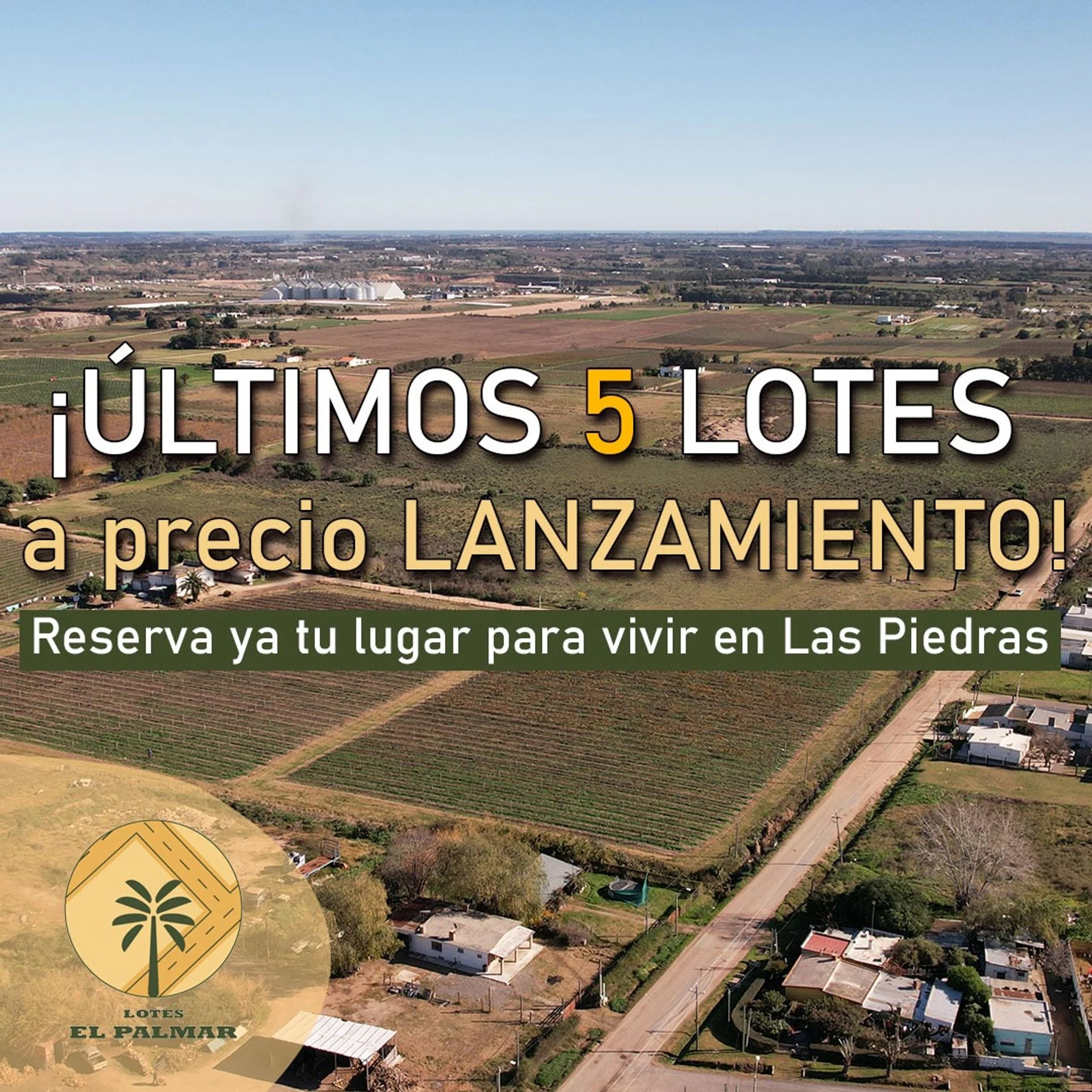 Corredor Responsable: - Contacto: Fabiana Steinberg \\\"El Palmar\\\", ubicado en Camino Sacomani y Mario Pareja, estratégicamente en el límite entre Las Piedras y La Paz. 109 terrenos de entre 300 y 430 m2 cada uno. Se entregan nivelados con servicio de UTE y OSE. Promoción especial lanzamiento para los primeros 10 compradores: quedan solo 5 lugares!!! Financiación directa hasta 10 años por el 90% del precio. Consulta por mas información. Cada Oficina es de propiedad, gestión y desarrollo independiente La presente publicación describe las características esenciales del inmueble, debiéndose consultar al responsable de la operación por la eventual actualización de las medidas, descripciones arquitectónicas y funcionales, servicios, impuestos, precios y demás información, cuyos valores son aproximados.