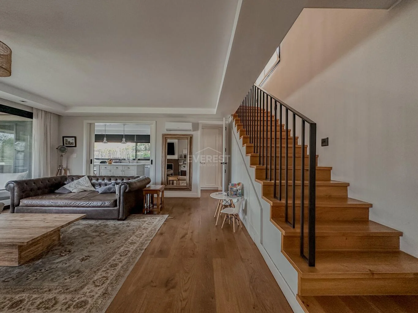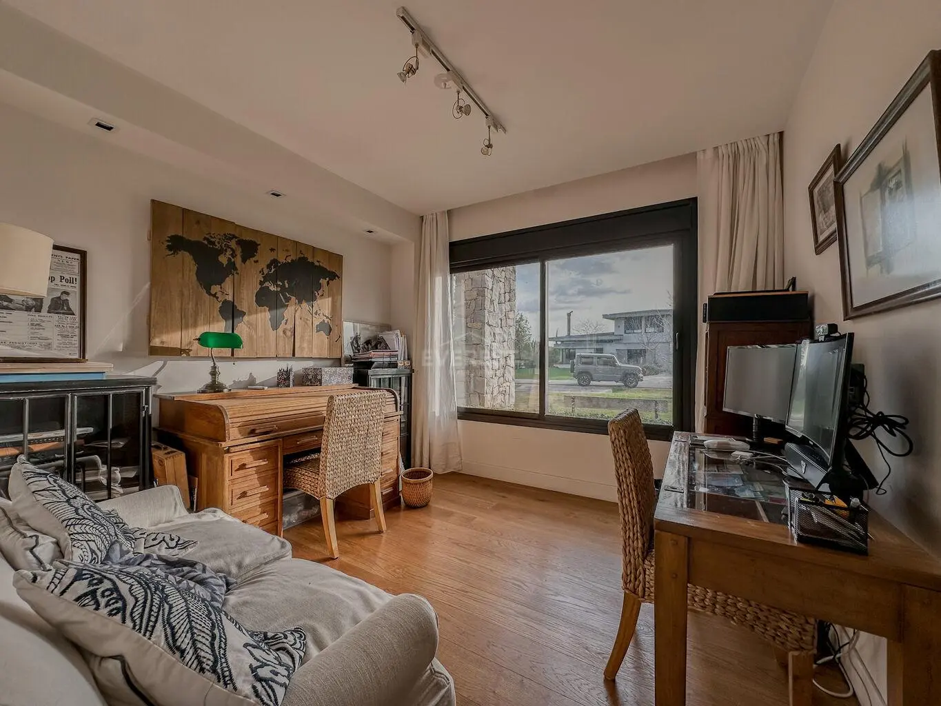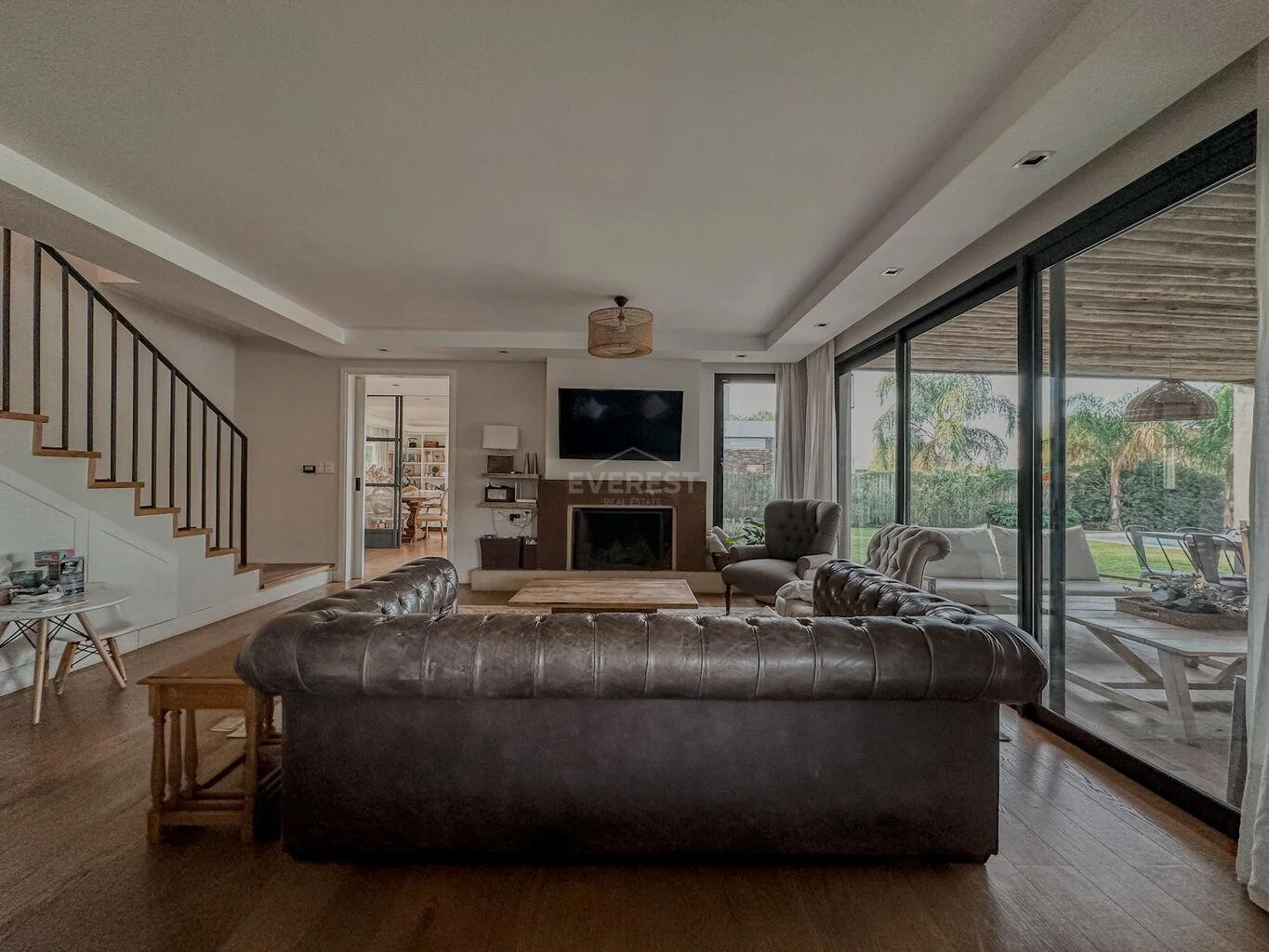 -Estar con estufa a leña con cocina integrada y salida a parrillero