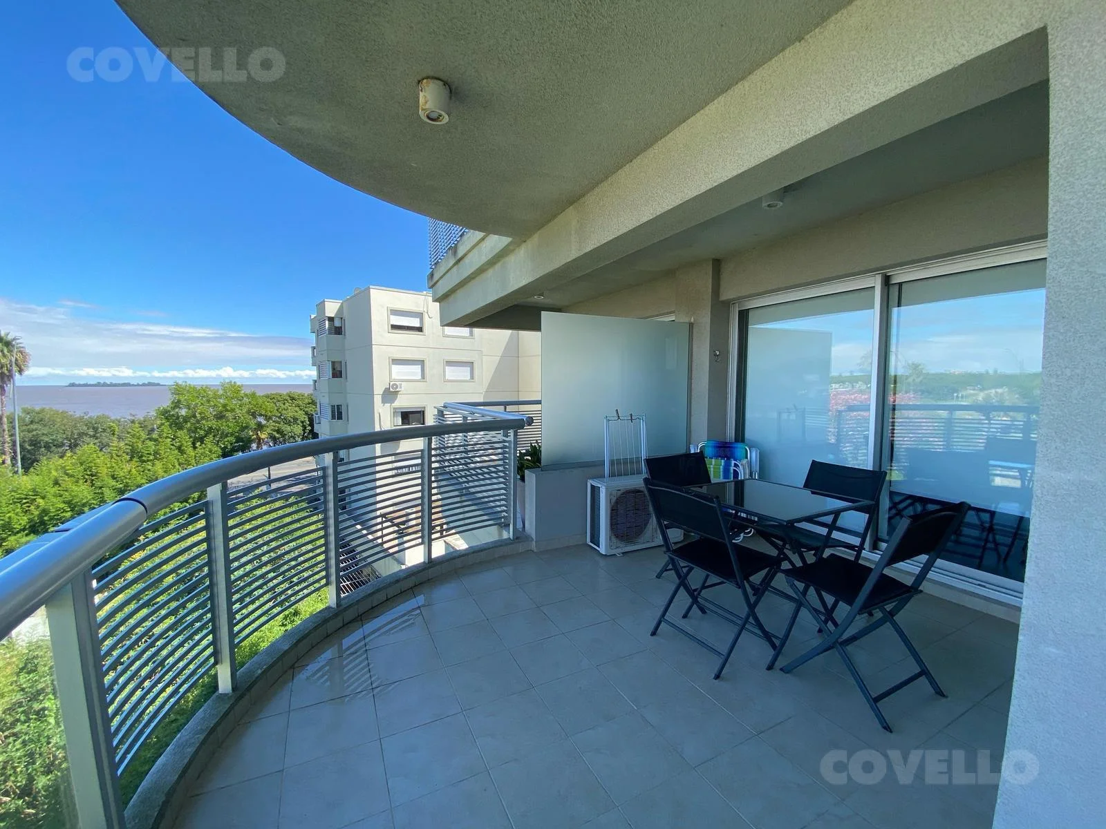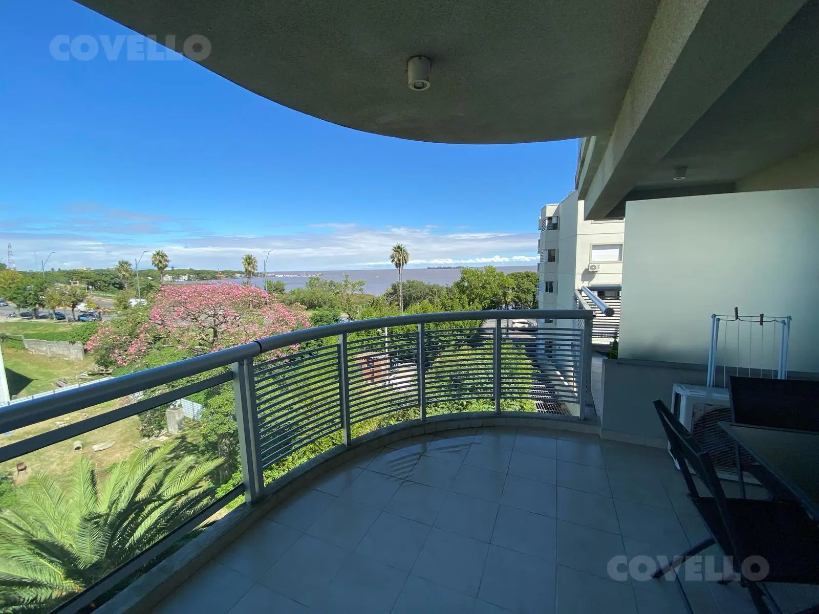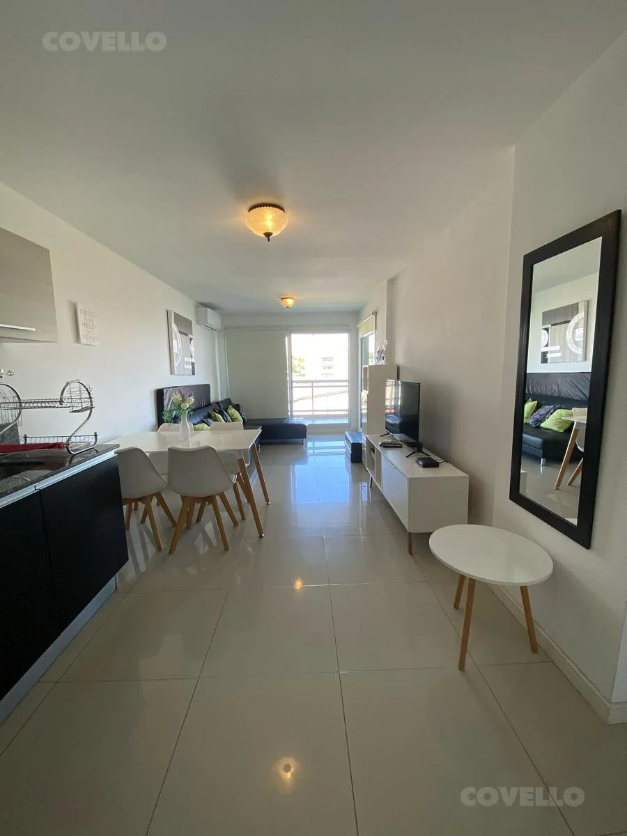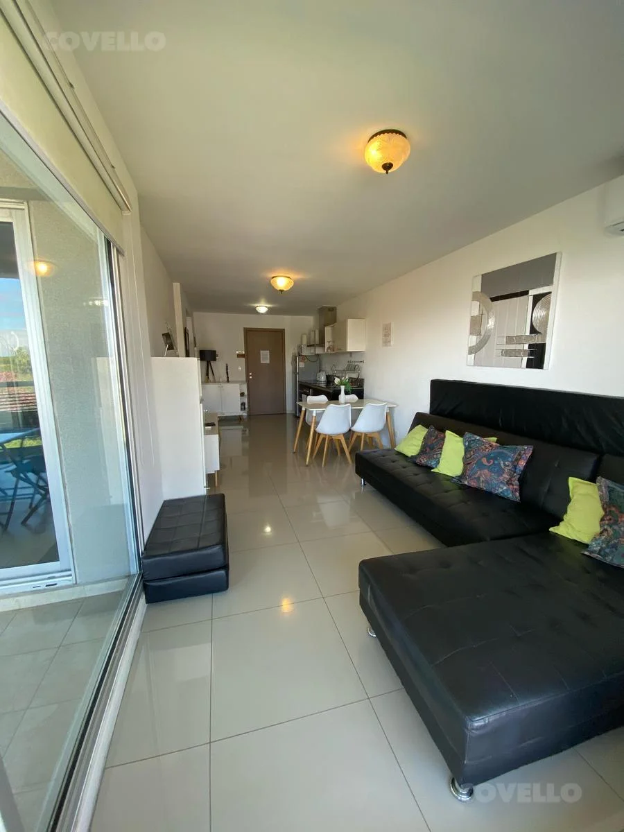 La unidad está completamente equipada y lista para habitar: cocina con electrodomésticos, aire acondicionado, ropa de cama, Wi-Fi y todo lo necesario para una estadía confortable. El living-comedor con grandes ventanales ofrece una vista inigualable al Río de la Plata, ideal para disfrutar de atardeceres inolvidables.