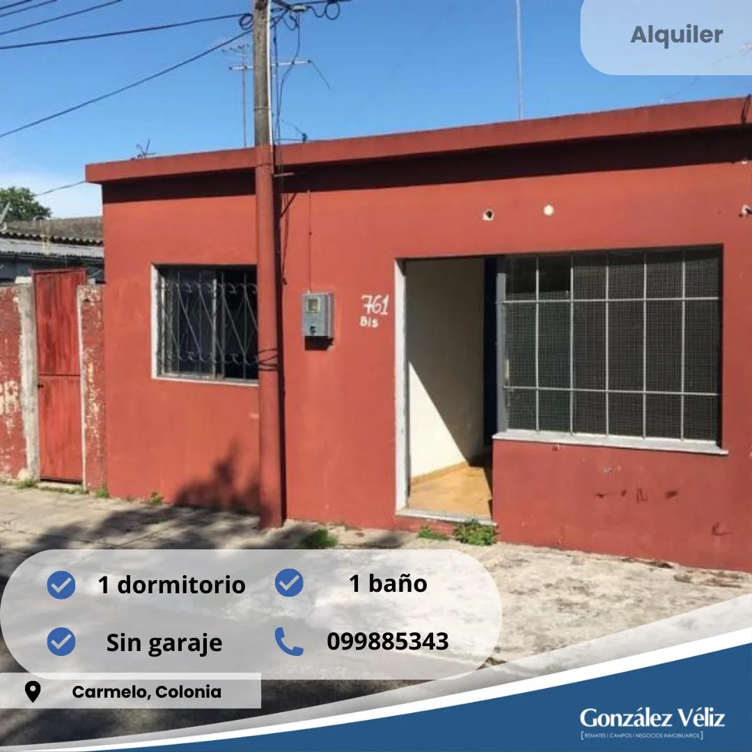 APARTAMENTO EN ZONA NORTE DE CARMELO EL MISMO DISPONE DE UN DORMITORIO, PEQUEÑO LIVING, COCINA Y BAÑOIDEAL PARA UNA PERSONA O PAREJA.Código de referencia: 1179Si te interesó la propiedad puedes coordinar visita a través de los números: ALQUILERES: Oficina *** / *** VENTAS: *** (Martín González)/ *** (Carlos Véliz)Estamos ubicados en Uruguay esquina Roosevelt, Carmelo - Uruguay.