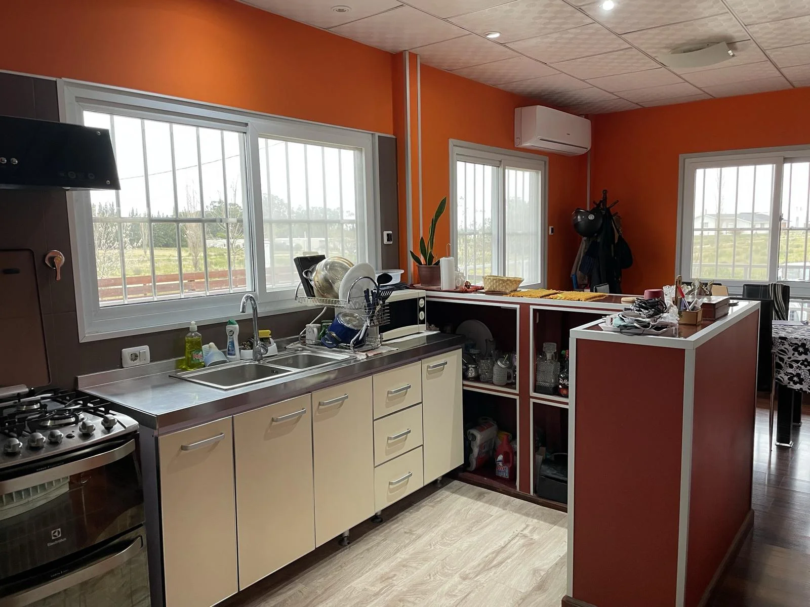 La casa cuenta con piso flotante, amplios ambientes y muy buena luminosidad. Dispone de calefacción mediante estufa a leña (calefactor) y aire acondicionado, además de gas natural, lo que asegura confort durante todo el año.
