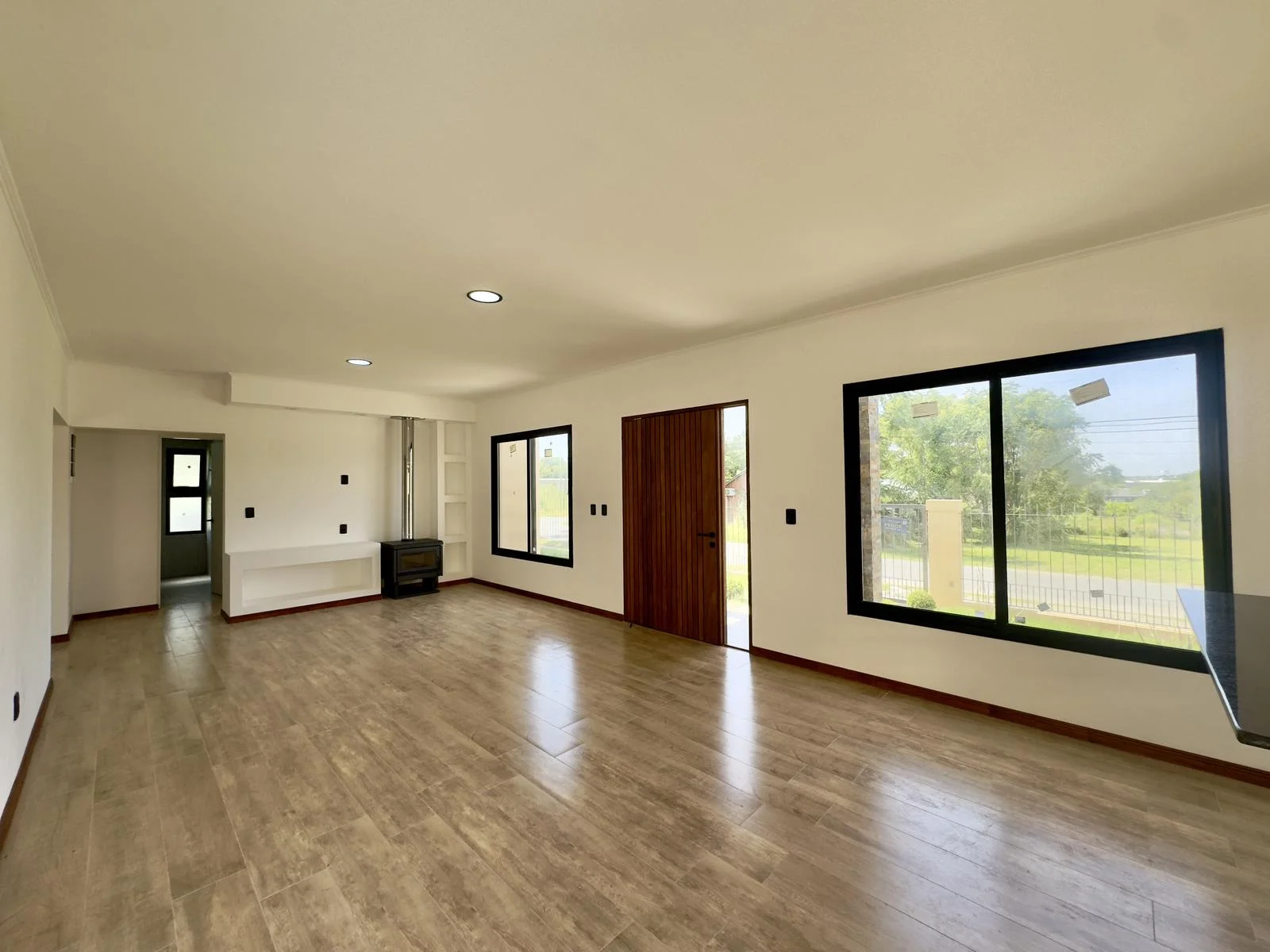 La casa cuenta con 3 dormitorios amplios, una gran sala de living-comedor equipada con calefactor a leña y ventanales que permiten un excelente ingreso de luz.