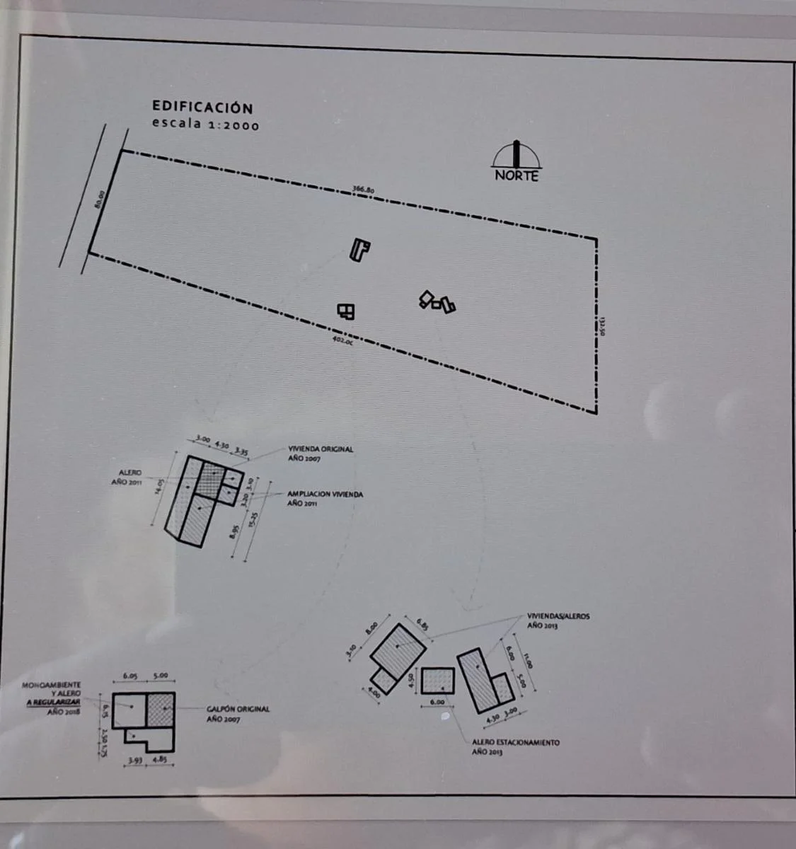 Infraestructura completa: Los 250 metros cuadrados construidos se distribuyen armoniosamente entre las cuatro viviendas, complementados por un galpón de 5 x 6 metros, perfecto para almacenaje, taller o diversas actividades.