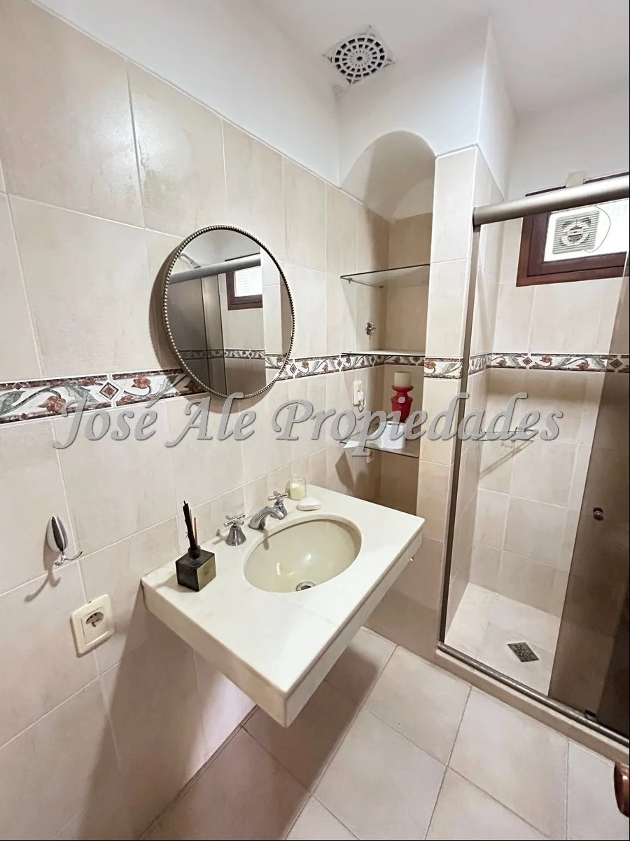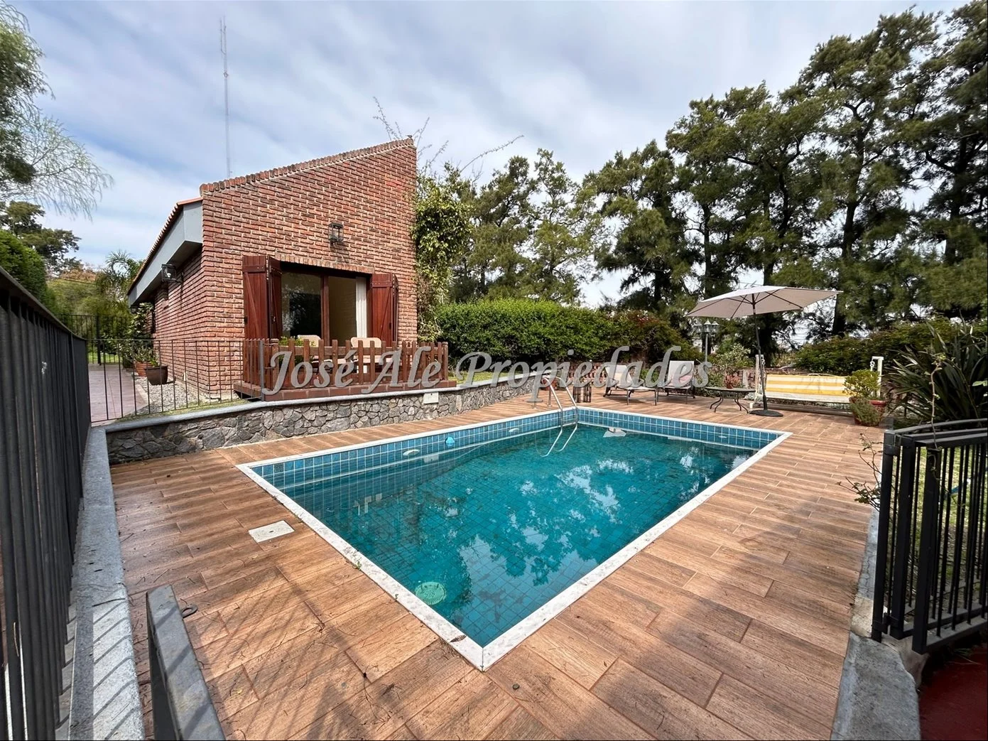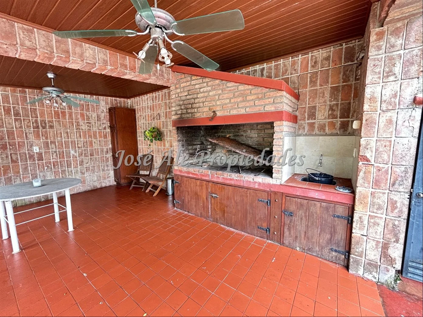 jardín arbolado con mucha sombra, barbacoa con parrillero techado con mesada y bacha, cochera para dos autos.