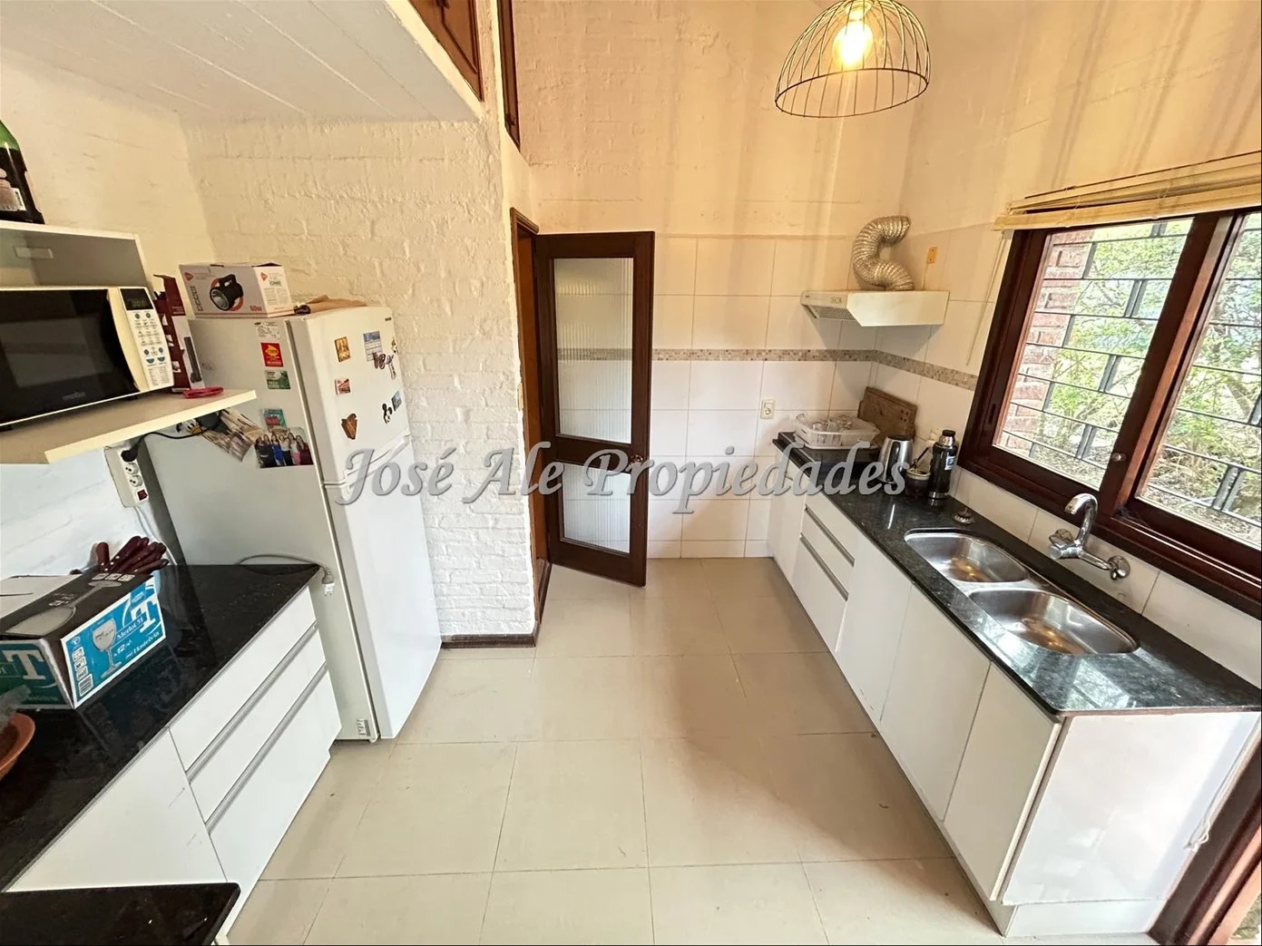 Cuenta con 4 dormitorios (uno en suite con salida a balcón deck de madrea y con armario empotrado y otro con amplio altillo o 5to dormitorio), baño social, amplio living comedor con pisos de porcelanato símil madera, cocina con armarios empotrados, dos mesadas y doble pileta.