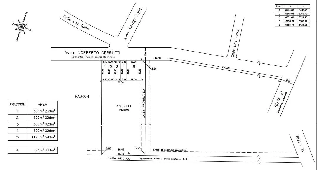 NUEVO PRECIO !! En venta 5 terrenos ubicados a 350 metros de Ruta 21 por calle Norberto Cerrutti y Henry Ford. Se trata de 4 lotes que cuenta con un área total de 500m2 y 1 lote con un área total de 1100m2. Se pueden acceder comprar uno de éstos lotes con un 30% y el saldo se financia hasta en 60 cuotas. Se puede ampliar los años a financiar a través de un crédito en BBVA- No dudes en contactarnos por mas información!! Código de referencia: GLA7368278