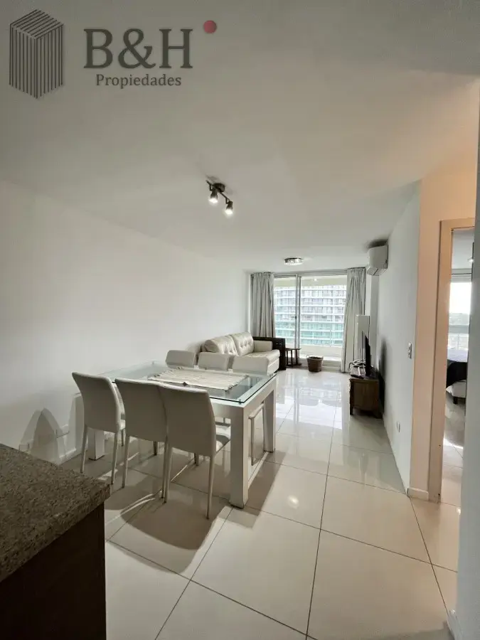 La cocina integrada se abre a un acogedor living comedor, creando un espacio abierto y luminoso perfecto para relajarse o entretener a los invitados. Pero eso no es todo, este apartamento también ofrece un servicio de mucamas, para que pueda disfrutar de su tiempo libre sin preocuparse por las tareas del hogar.