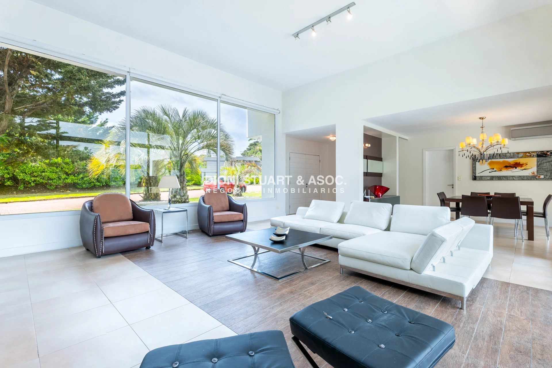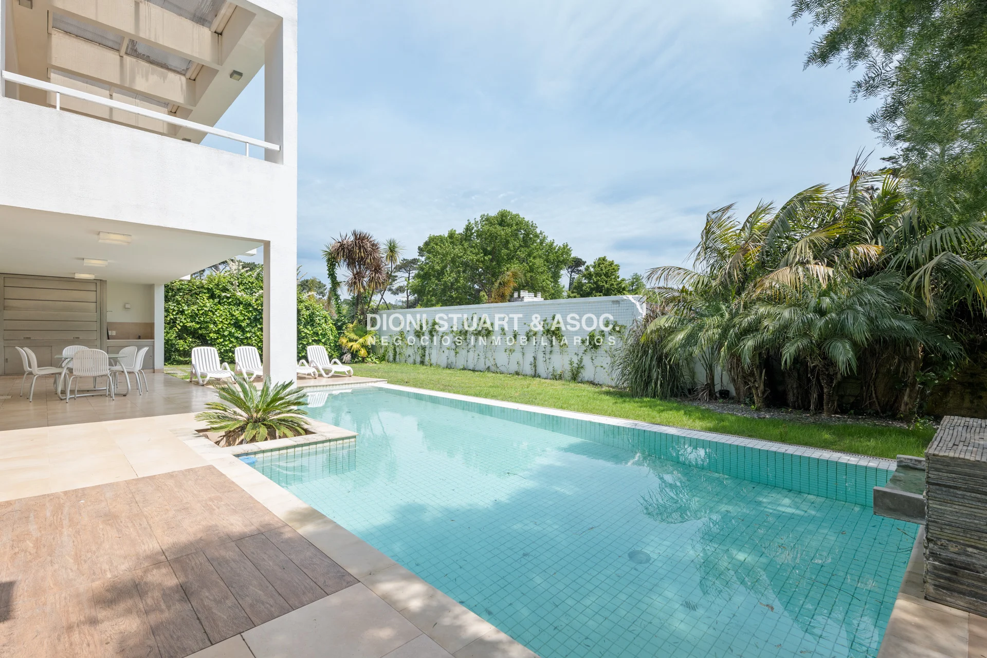 La casa en si se divide en dos plantas, obteniendo asi en planta baja un amplio living-comedor, un dormitorio en suite con placar empotrado, toilette y una comoda cocina con comedor diario, lavadero y dependencia con baño. En el segundo piso la casa cuenta con tres dormitorios en suite todos con terraza, y el principal con hiromasaje en el baño y vestidor walk-in. Todos los ambientes cuentan con aire acondicionado y loza radiante sectorizada. Cuenta con piscina climatizada.