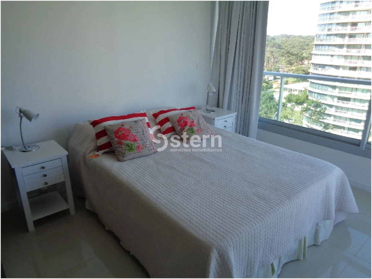 A pasos de Punta Shopping, 3 dormitorios, 3 baños, living comedor, terraza, cocina tipo americana, garaje. Edificio con piscina climatizada solo funciona en verano, piscina abierta, gimnasio, sauna, cancha de tennis.