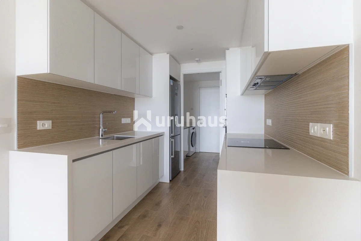 Este apartamento de 75 m2 cuenta con un dormitorio, un baño y una suite, perfecto para una pareja o un soltero que busca un espacio elegante y cómodo. La cocina semi-integrada fluye hacia el living y el comedor, creando un espacio abierto y luminoso ideal para recibir invitados o disfrutar de una cena tranquila.