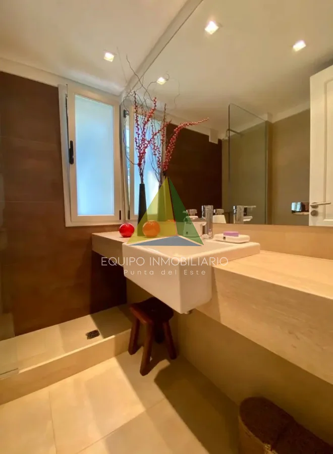 Master suite amplia, con vestidor y moderno baño completo. Más tres espaciosos dormitorios, dos de ellos en suite. Todos los ambientes cuentan con losa radiante sectorizada, Aire Acondicionado en todos los dormitorios, televisor de pantalla plana y prácticos placards de madera que permiten mantener la vista limpia y despejada.