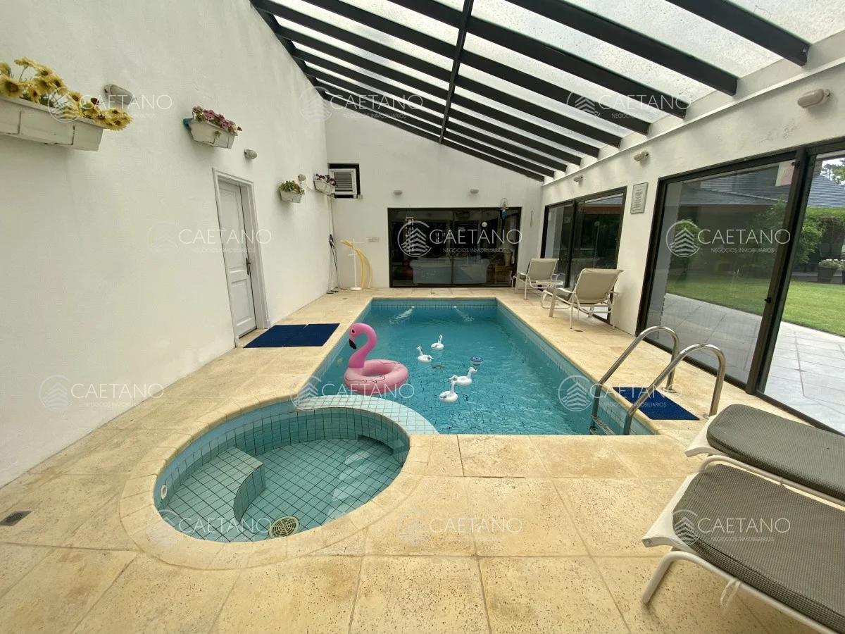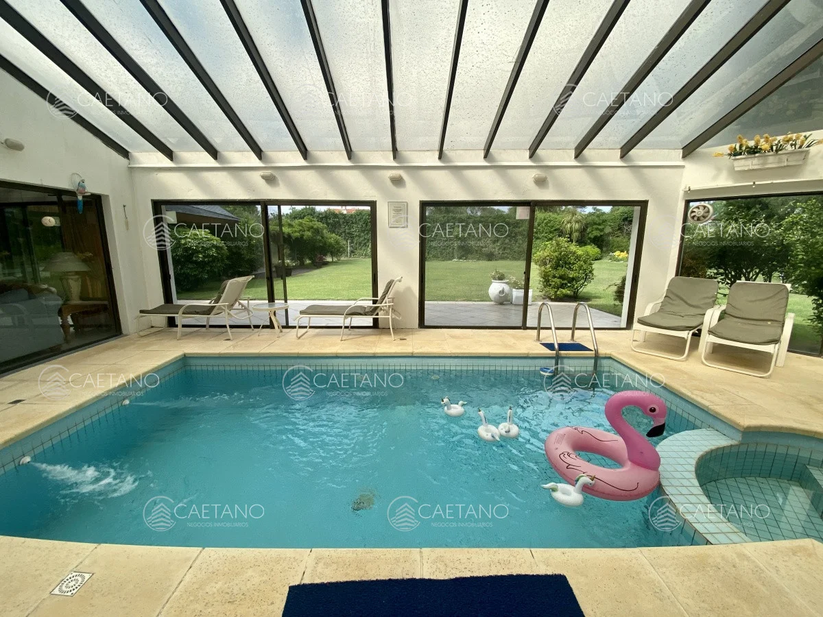 Amplio y luminoso living con techos altos y gran estufa a leña, comedor formal y toilette. Cómodo jardín de invierno con acceso a barbacoa. Piscina con jacuzzi climatizada y techada con laminas de policarbonato ideal para disfrutar todo el año, sauna seco y sala de juegos.