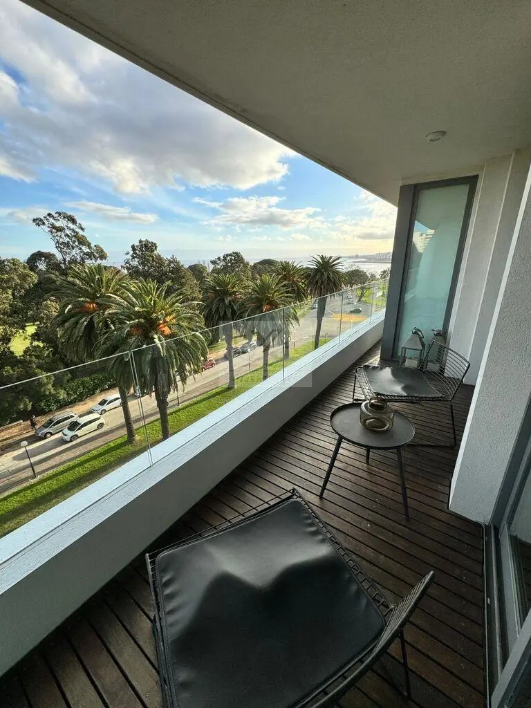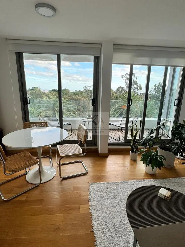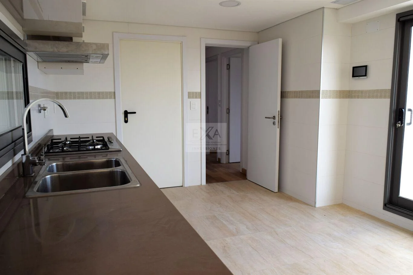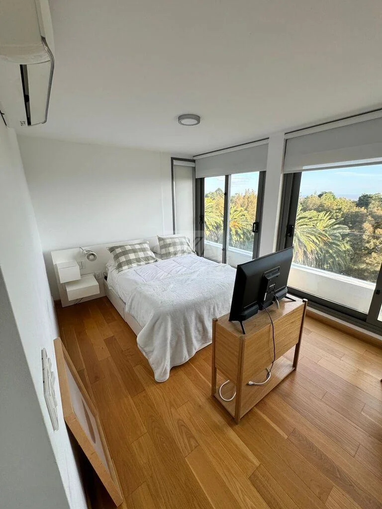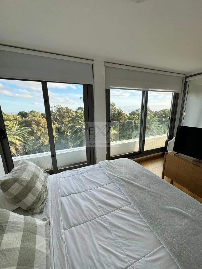 Living comedor con balcón al frente, 2 dormitorios (principal en suite), 2 baños completos, cocina definida con salida a gran terraza al frente, y terraza de servicio al contrafrente.