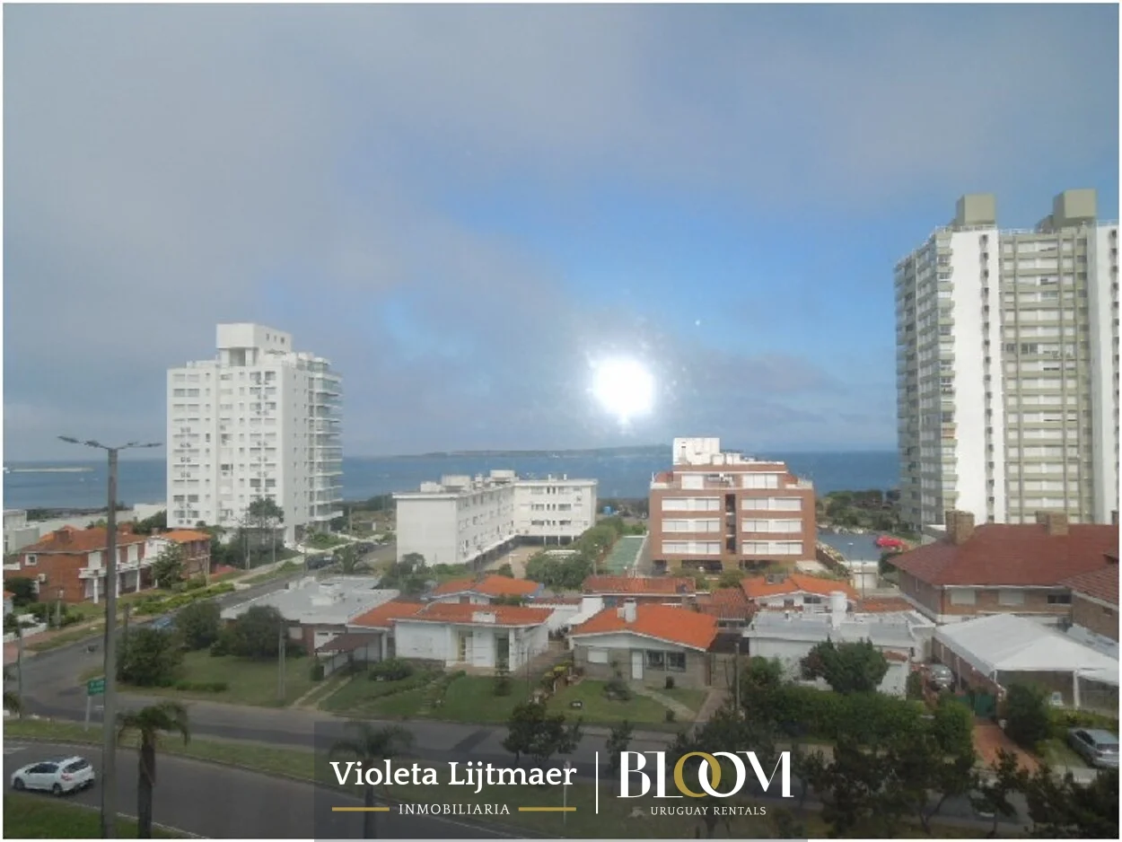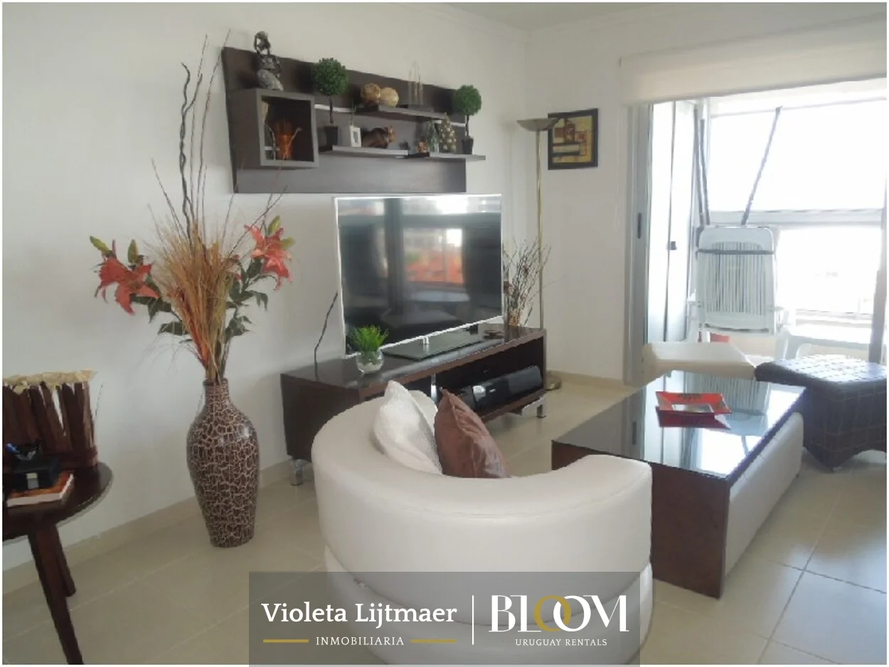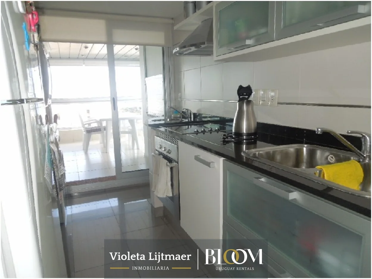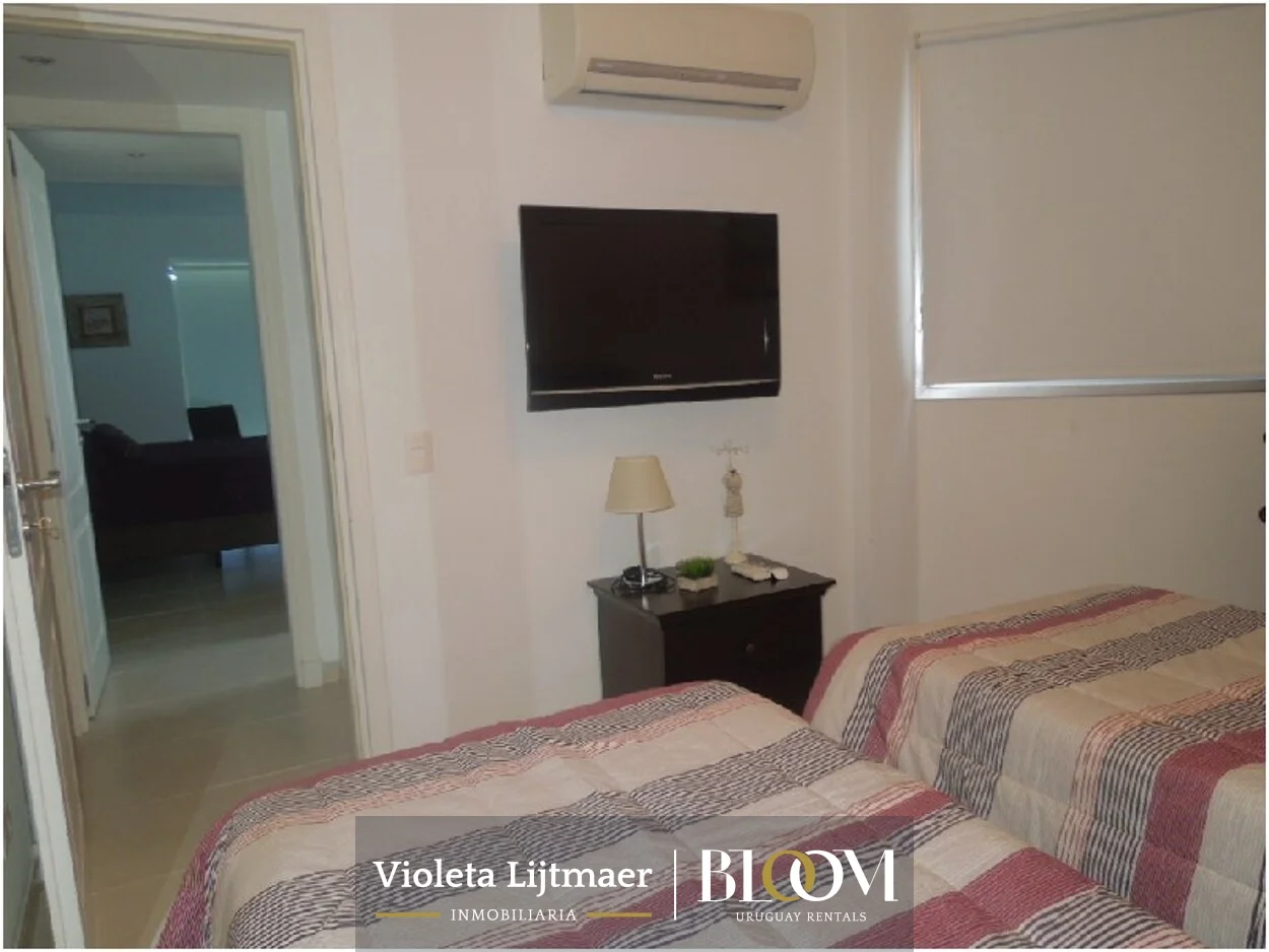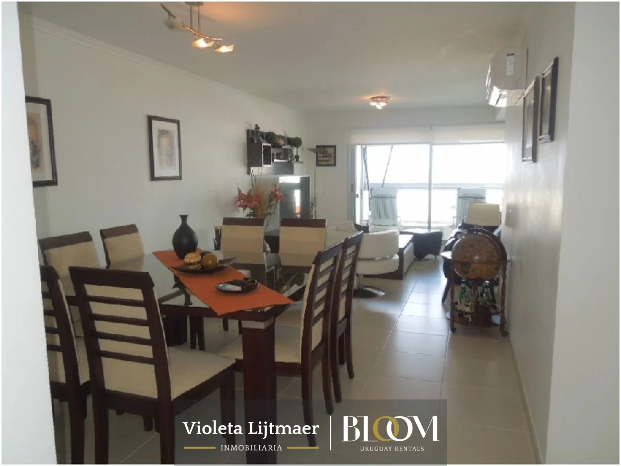 Espléndido apartamento esquinero de dos dormitorios en suite. Dos baños y toilette. Amplio y luminoso living comedor con salida a terraza con parrillero privado y vista a Playa Mansa. Cocina definida con salida a terraza y área de lavadero. Aire acondicionado en todos los ambientes. Cuenta con una cama matrimonial y dos camas de una plaza. Ropa blanca. Garaje.