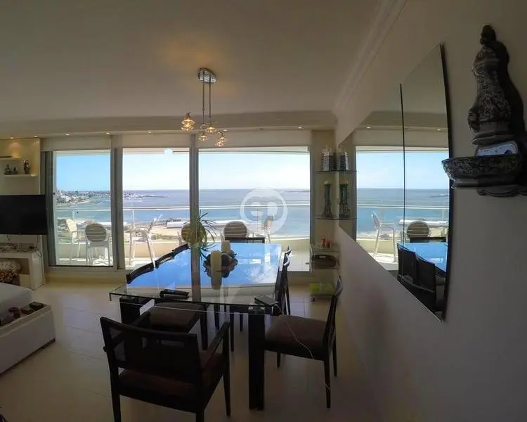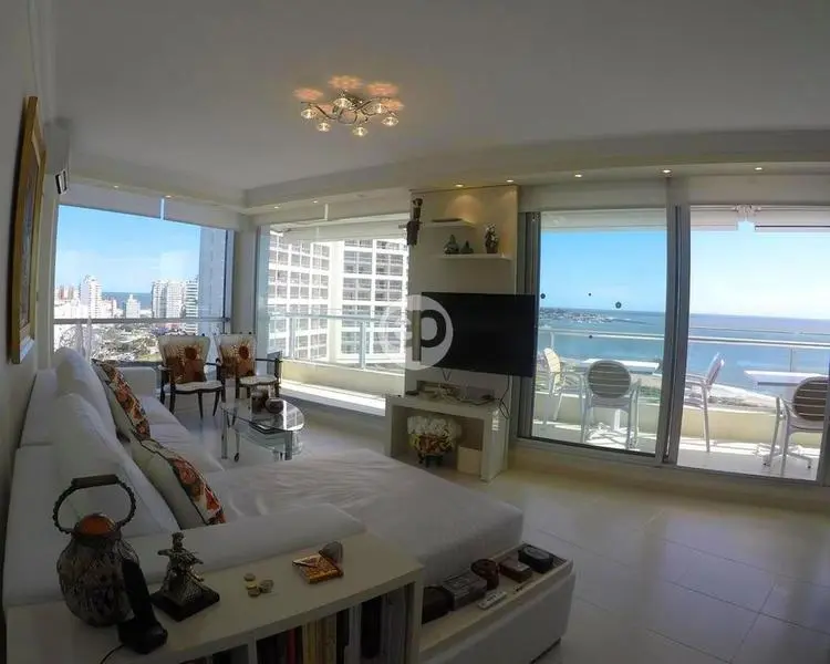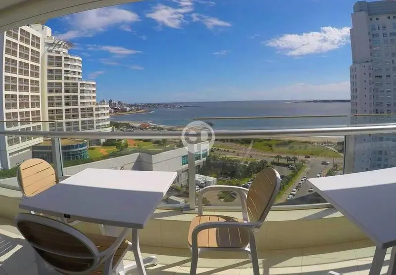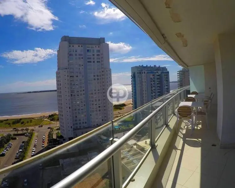 Vista al mar de playa mansa desde piso alto y doble terraza, apartamento de amplios ambientes, cuenta con 3 dormitorios, 3 baños (principal en suite con vestidor), living-comedor, cocina, dependencia de servicio con baño y garaje en subsuelo. Torre de categoria con todos los servicios. Totalmente equipado. Consulte!