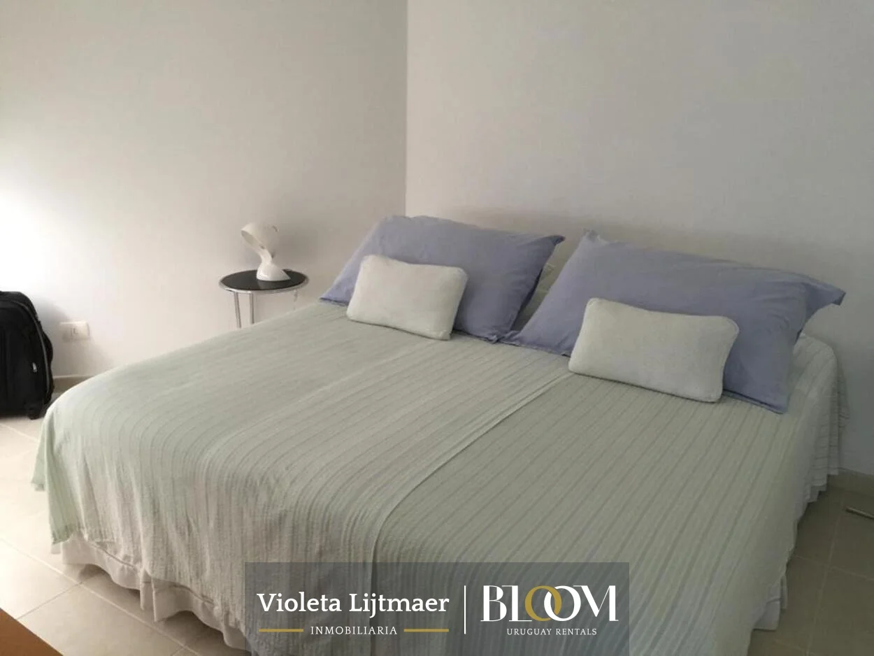 Apartamento de 107 m2 en La Pastora, Punta del este. Dos dormitorios en suite. Dos baños y toilette. Luminoso living comedor con salida a terraza con parrillero privado y vista a Playa Mansa. Cocina definida con salida a terraza y área de lavadero. Aire acondicionado en todos los ambientes. Cuenta con una cama matrimonial y dos camas de una plaza. Ropa blanca. Garaje.