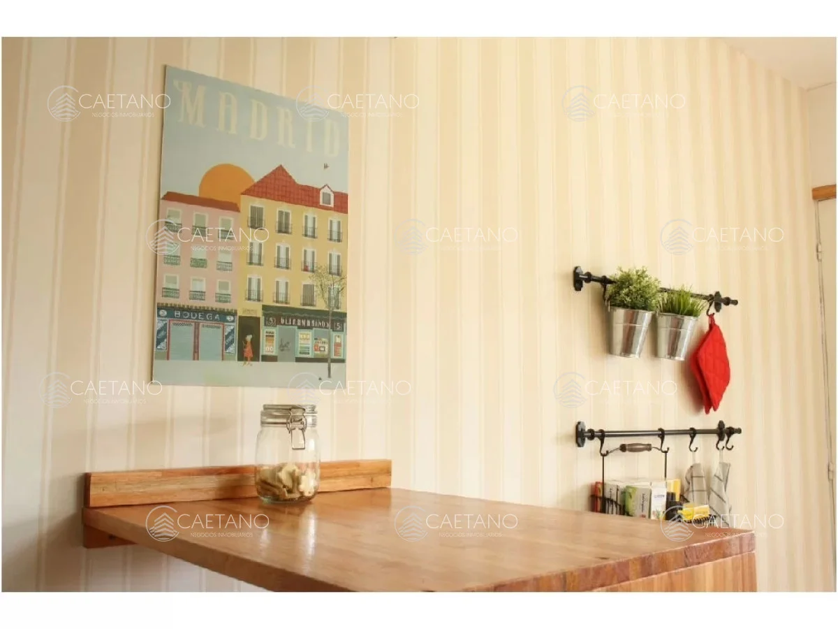 Cocina definida y living comedor.