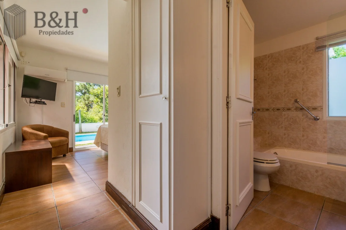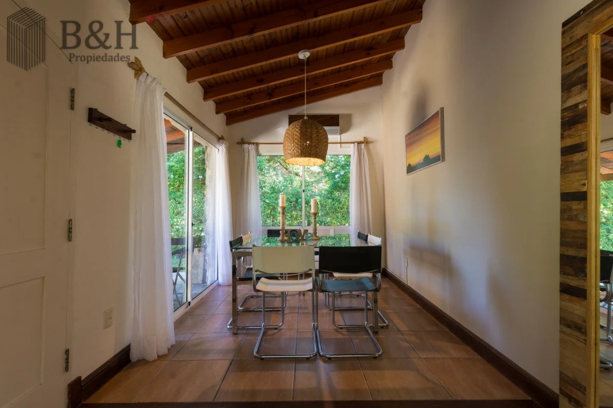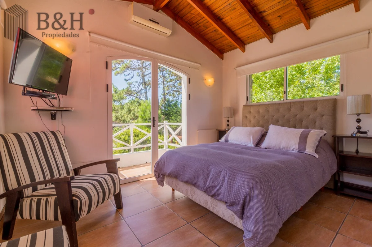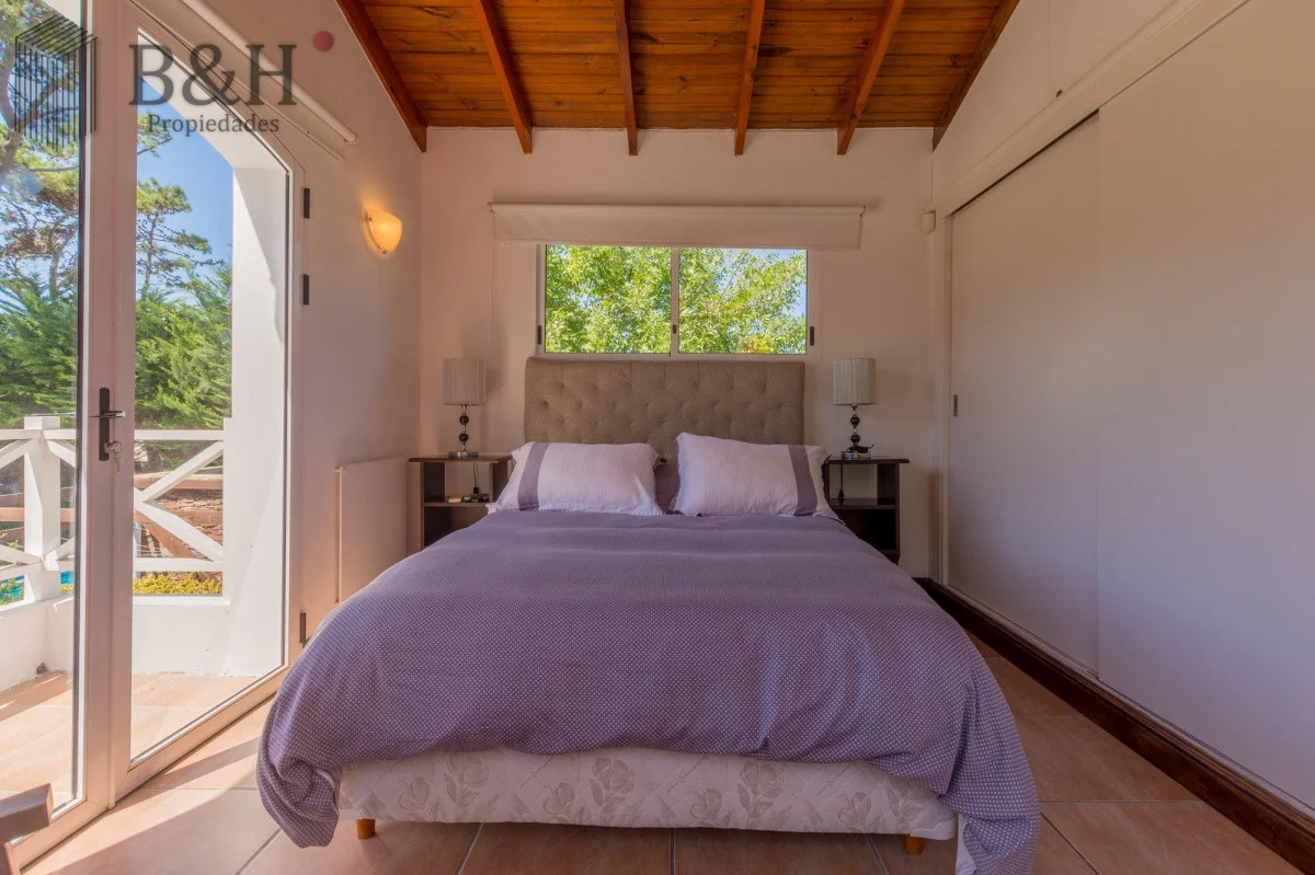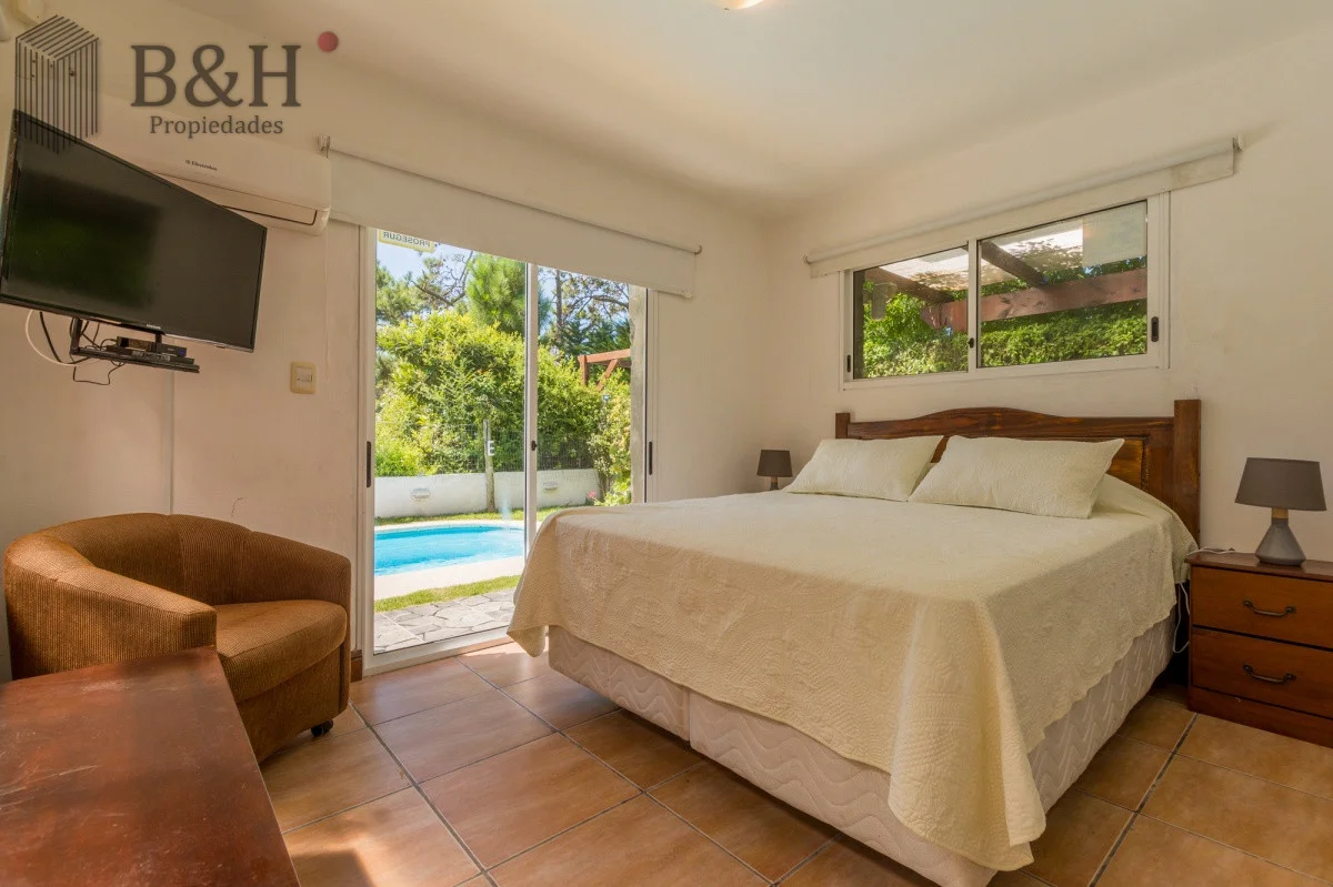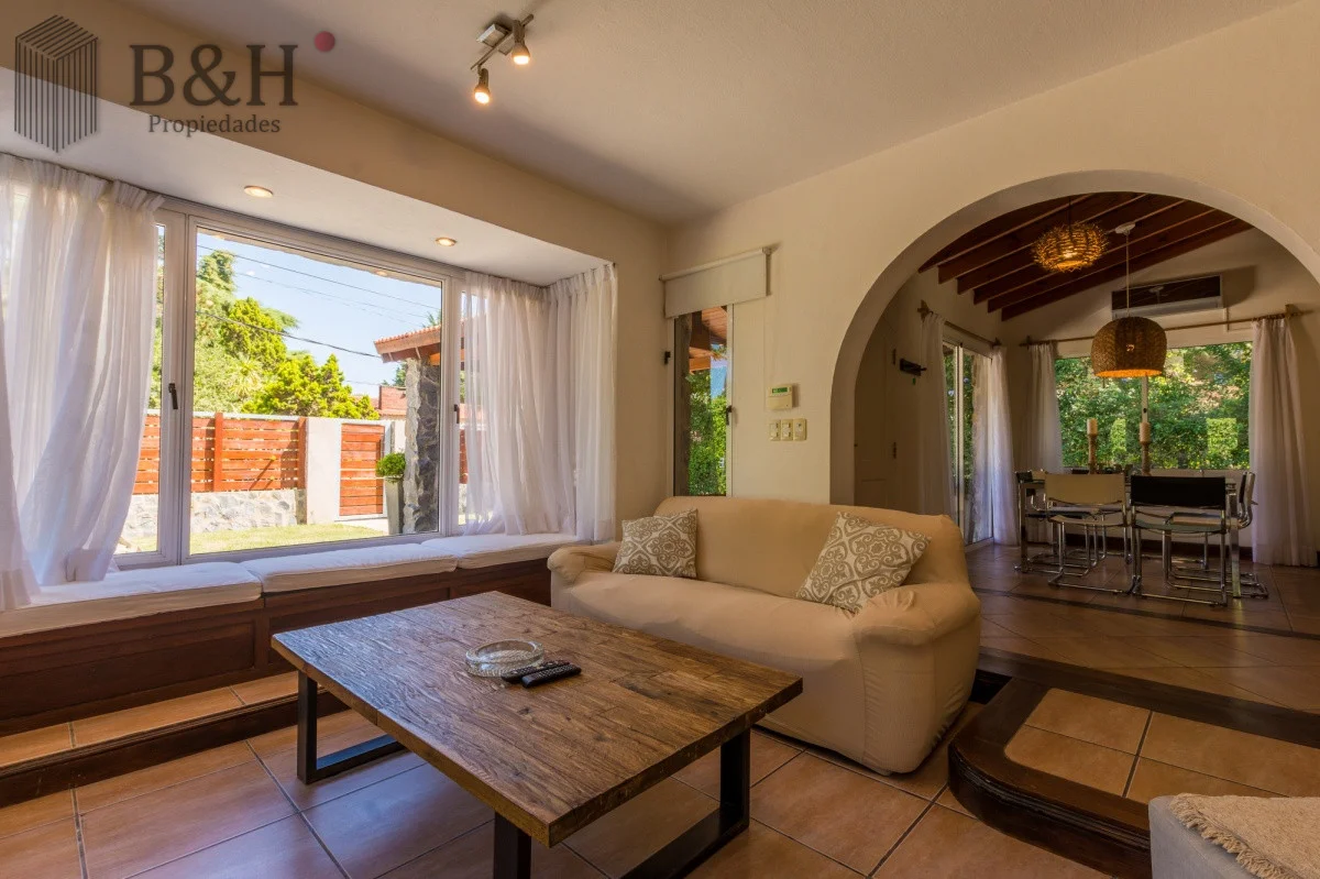 Tan exclusiva como Rincón del Indio! Rodeada por verdes árboles y sin el ruido de la ciudad, el sonido de las olas del mar lo invitan a conocer esta magnífica casa, de visión cálida y moderna. Su estadía será con categoría, confort y seguridad. Con 3 dormitorios (1 en suite) distribuidos en planta baja la suite y dependencia con baño. En planta alta 2 dormitorios con baño y otro cuarto playroom. Totalmente equipada con a/a, wifi, cable. Parrillero techado con horno de pizza y jardín muy disfrutable con piscina climatizada, totalmente cerrado. Cochera techada. Cerco perimetral.