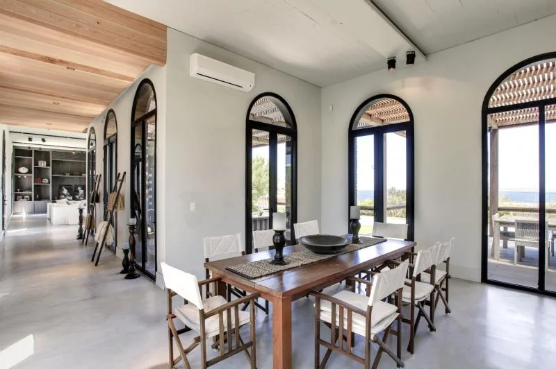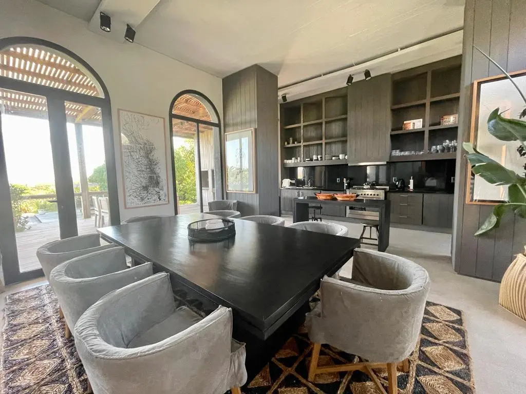 Sobre la planta principal se encuentra la cocina equipada y decorada con mesadas de mármol y mucha madera, comedor, amplio living . Espectacular vista a la puesta de sol, a la bahía y hasta Punta del Este desde el living, el comedor y las ampias terrazas. En el jardín se encuentra una espectacular piscina con cómodos camastros.