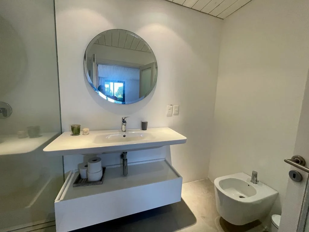 Original famous Arq. Jacques Bedel design, built on two floors. In the ground floor: master suite, two bedrooms in half suite. Maid´s room, laundry room fully equipped. Upstairs: kitchen, dining and living room with a woodburning fireplace. Air conditioning, garage and alarm system. Spectacular view to the sunset and to the bay. Nice garden and swimming pool.