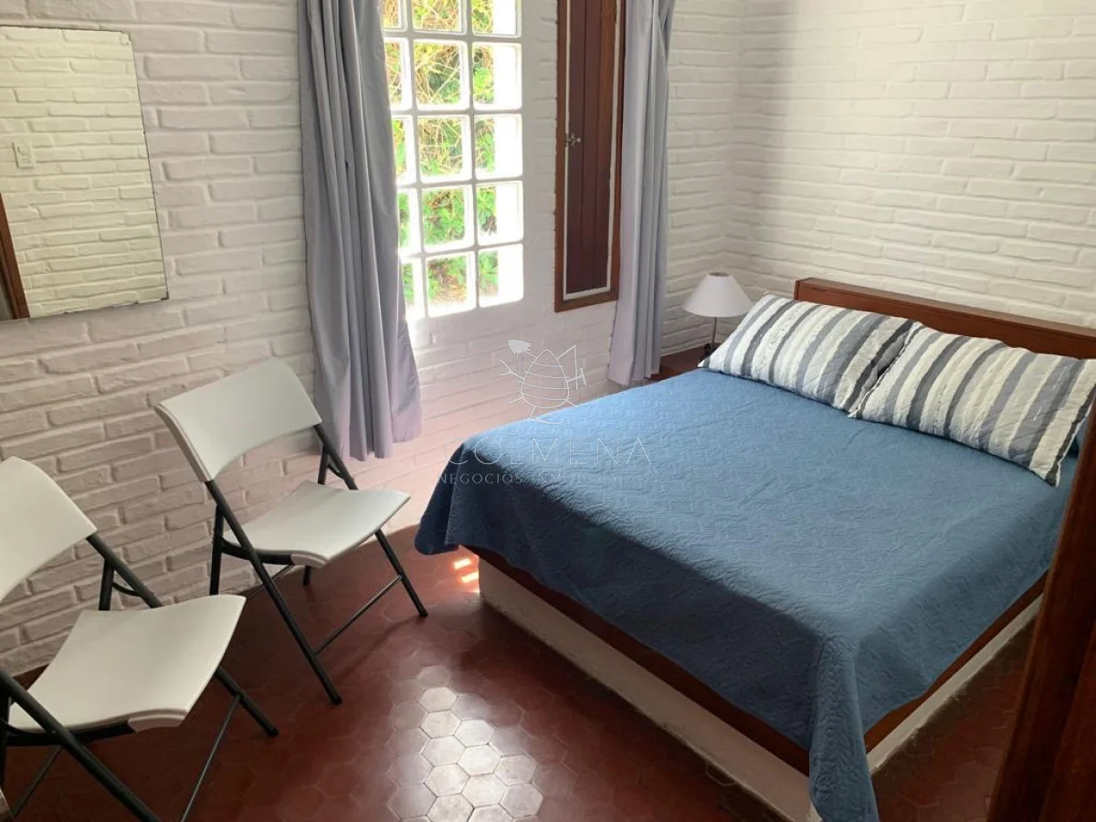 A 50 mts. de ingreso a la playa, Rinconada de Punta Ballena. Casa, dependencia anexa, galería abierta, patio con mesa al aire libre y parrillero, lavadero, jardín. Casa: living comedor, estufa a leña, cocina, dormitorio cama matrimonio, dormitorio con 4 cuchetas, baño. Aire acondicionado. Dependencia anexa: dormitorio cama matrimonio, dormitorio con dos camas, baño. Aire acondicionado. TV 39’. Punta Cable. Internet wifi. Fibra óptica. Equipada a nuevo. Se adjunta plano de ubicación. Foto. Alquiler anual o por temporada.