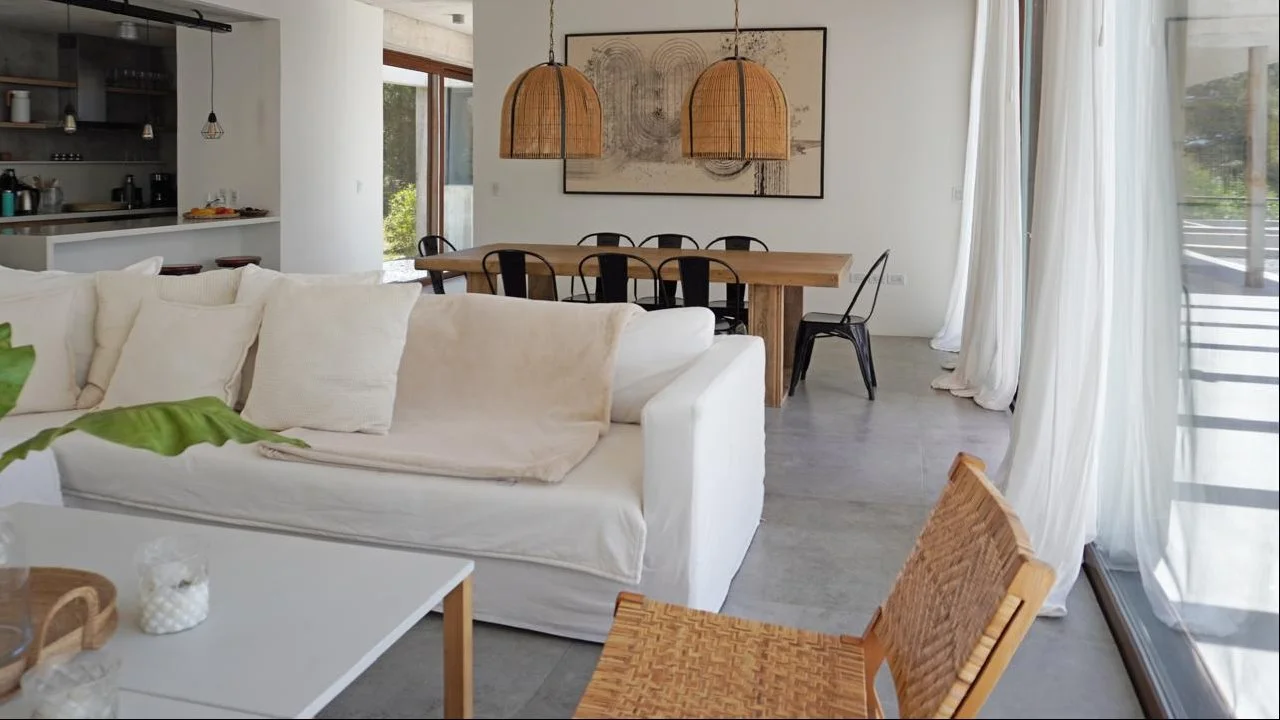 Amplio living comedor con cocina integrada. Ambientes luminosos y funcionales, con acceso directo a la terraza y vistas abiertas al entorno natural.