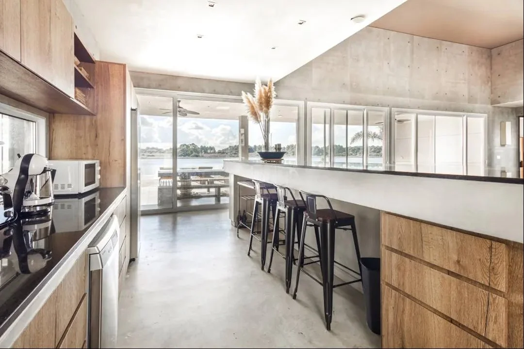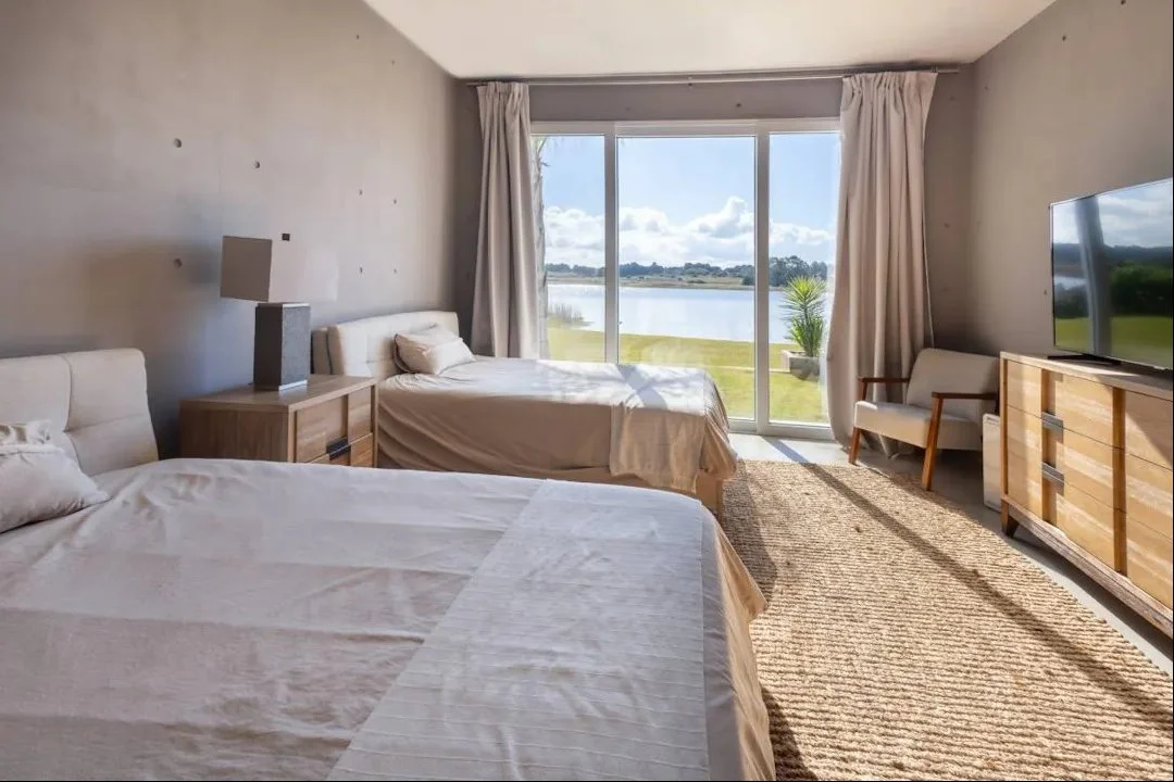 Disfrutá del verano en esta espectacular casa sobre la laguna, cuenta con 4 dormitorios en suite, toilette, dependencia de servicio, y un amplio living comedor con cocina integrada. Ambientes luminosos y funcionales, con acceso directo a la terraza y vistas abiertas al entorno natural.