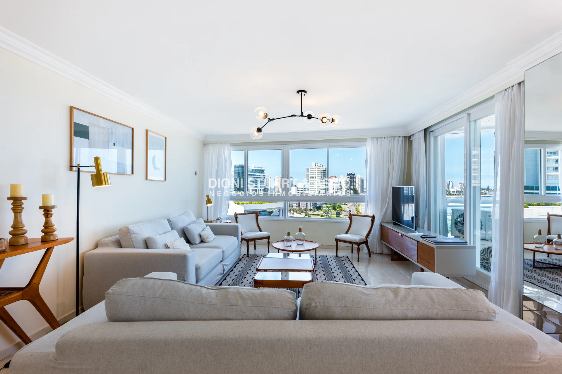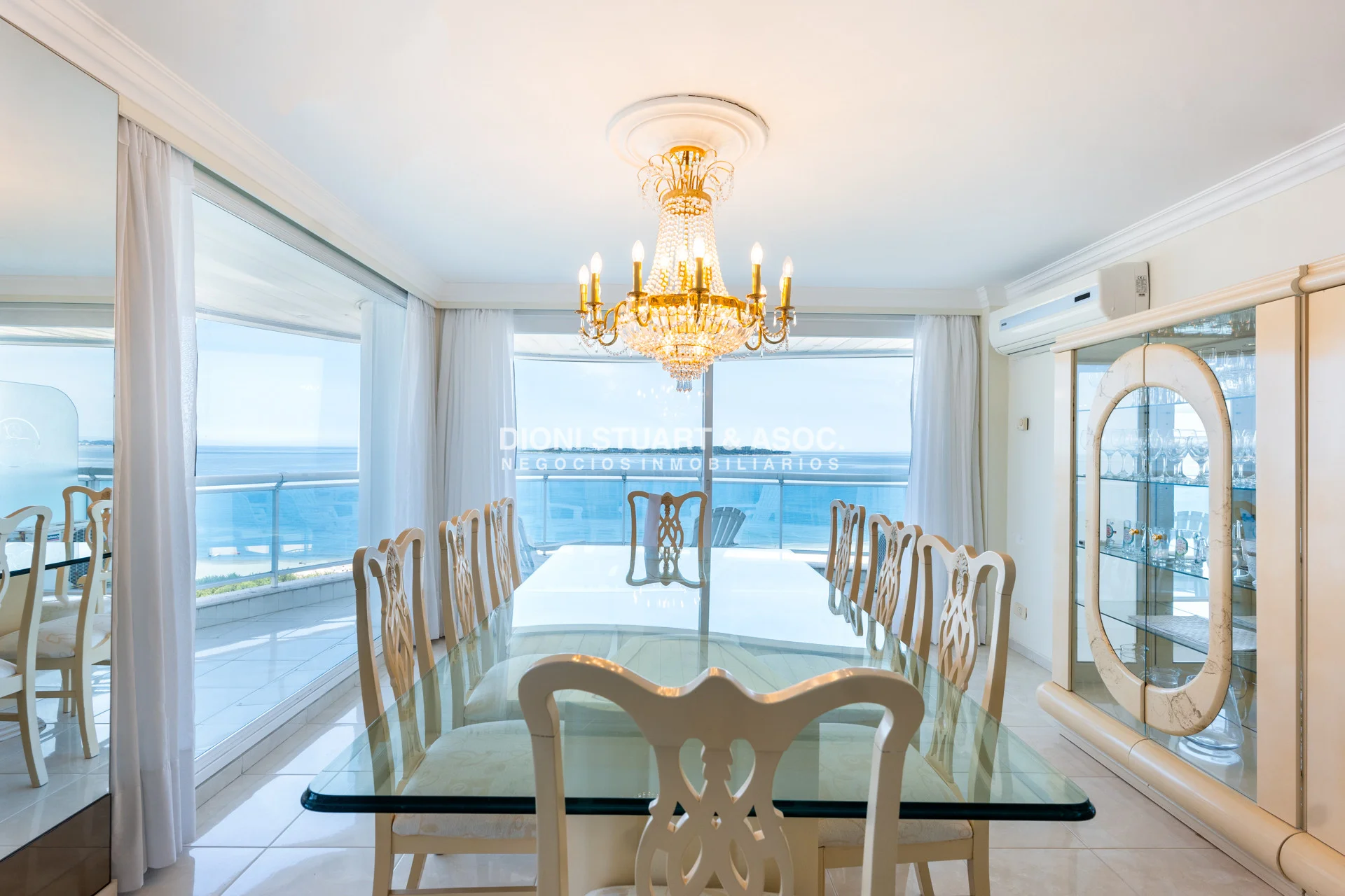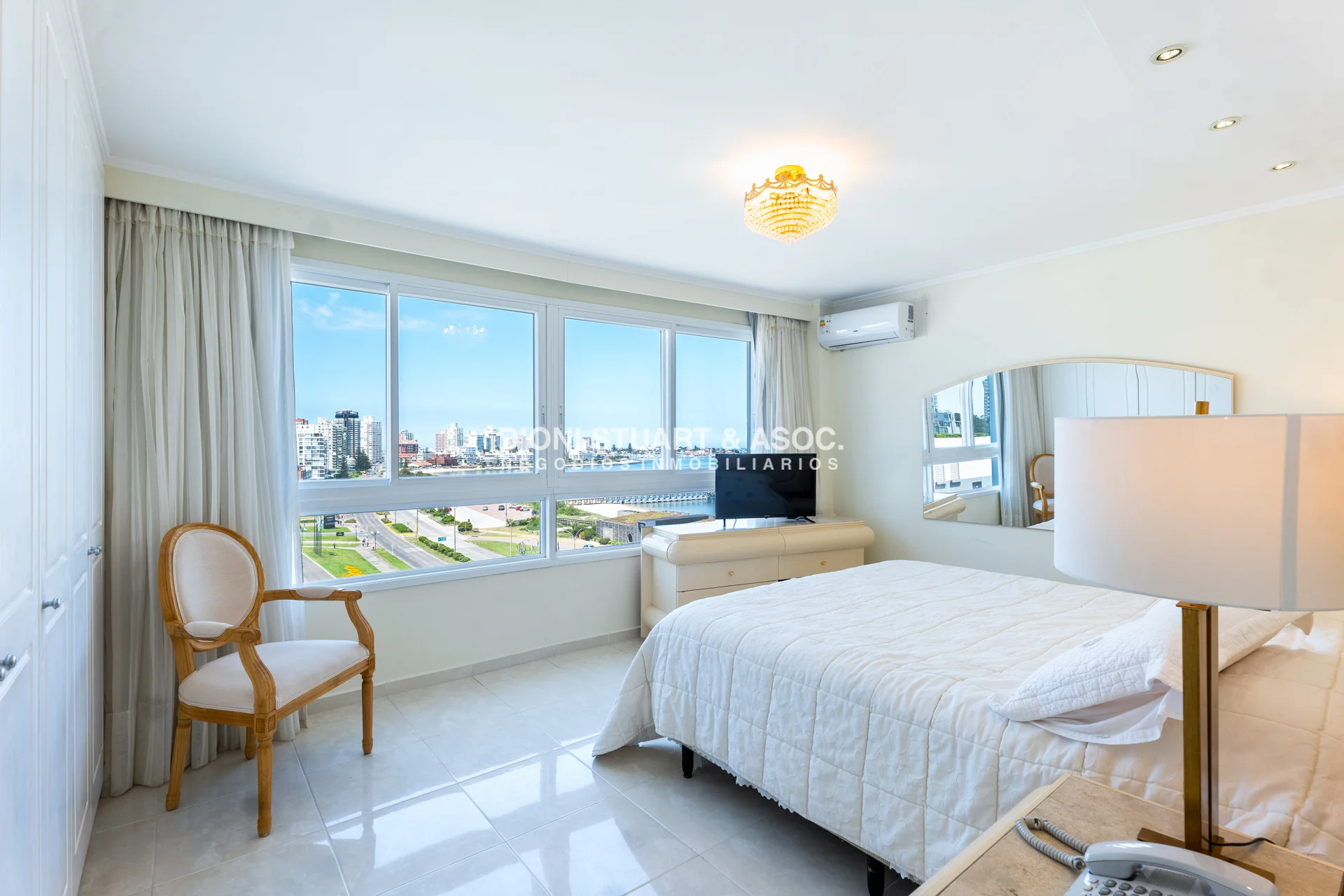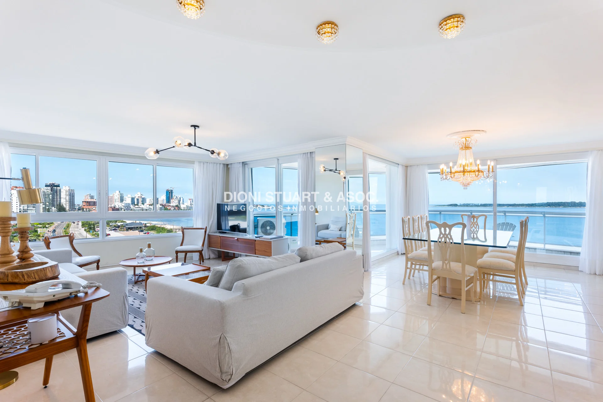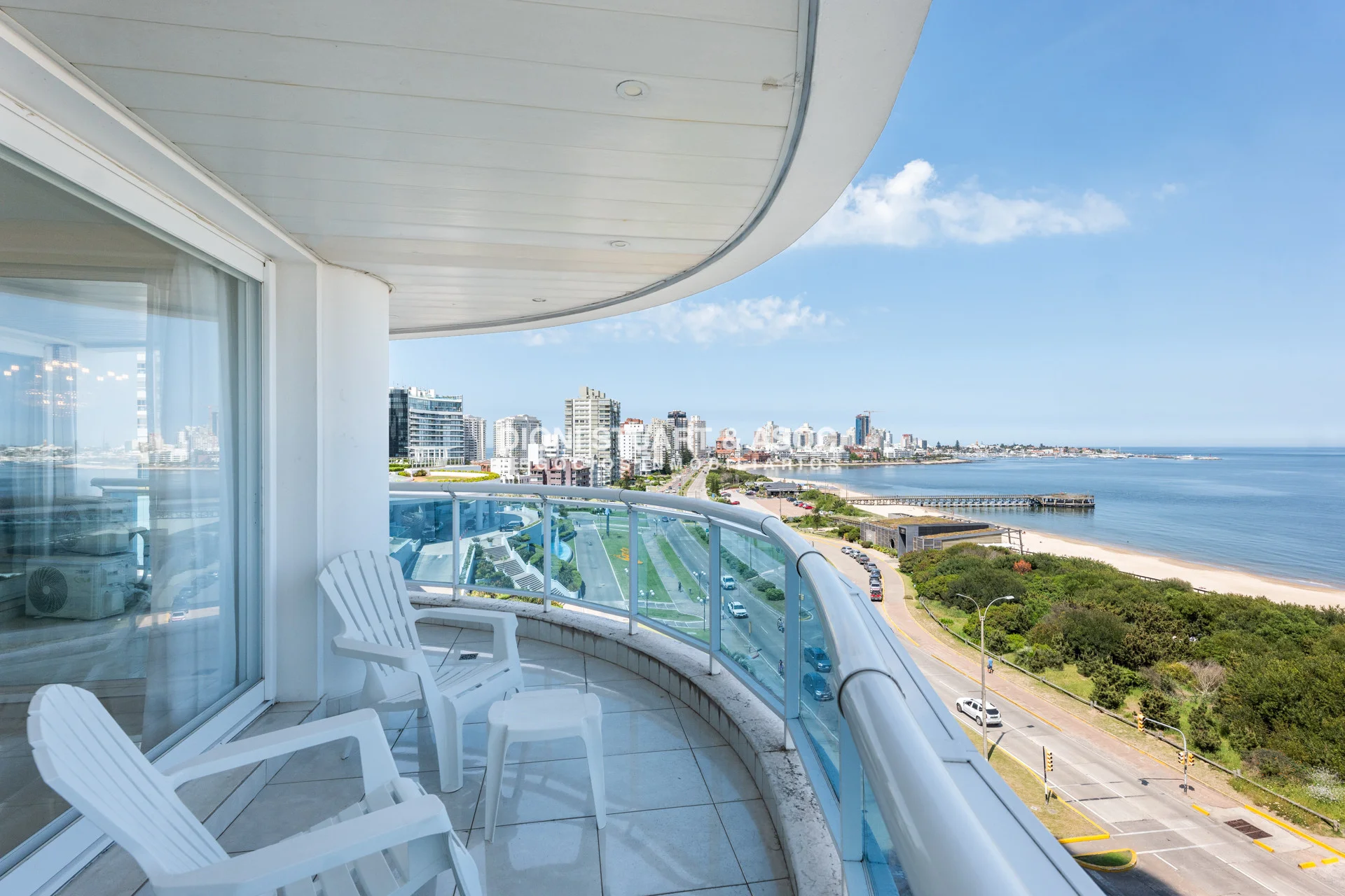 Unidad esquinera hacia Punta del Este, con vistas 180 grados partiendo desde Hotel ENJOY (Ex CONRAD) hasta Punta Ballena. Espectacular de dia por el mar azul y la iconica puesta del sol y de noche por la vista a la ciudad iluminada. Esta unidad en más de 180 m2 totales conecta vista-espacio de forma única, dado que inclusive desde sus dormitorios también podemos ver la Península. En total son 3 Dormitorios en suite + Toilette + cocina comedor con lavadero y dependencia en suite. Todos sus dormitorios con placares empotrados.