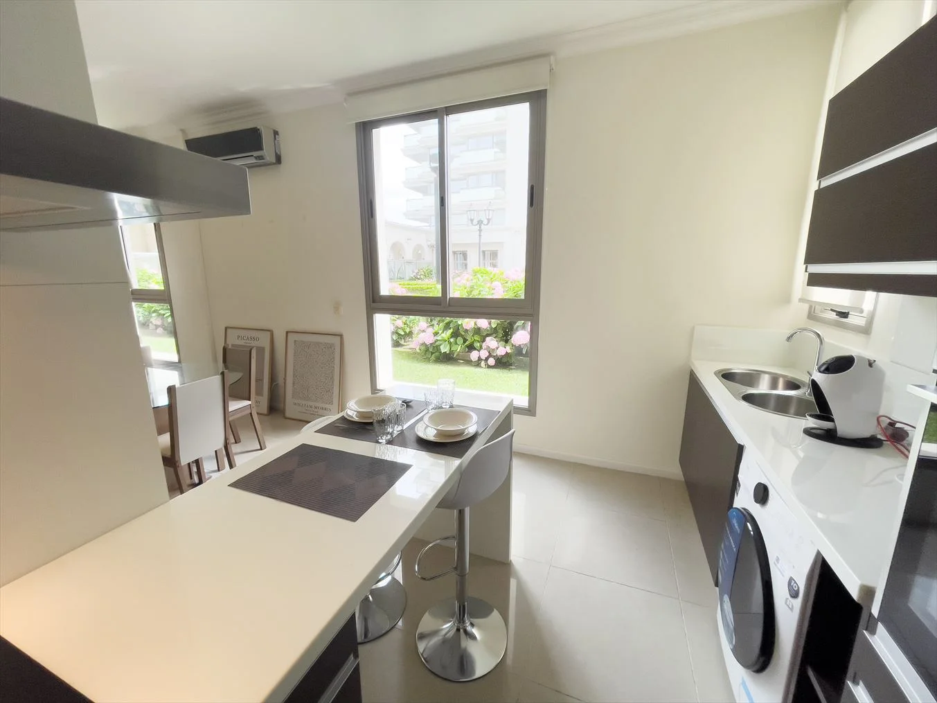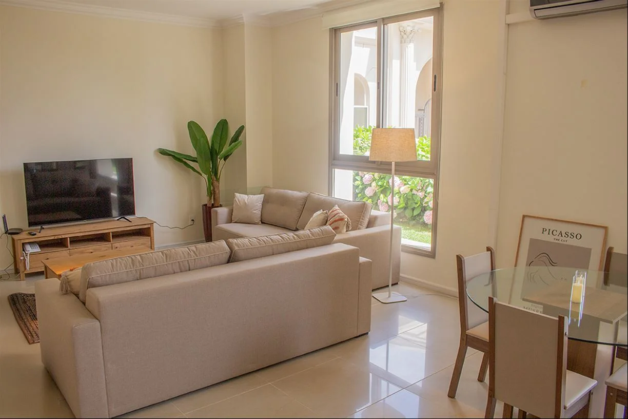 Ubicado a pasos de los icónicos Dedos de Playa Brava, este espacioso apartamento de 75 m² combina el confort de un hogar con los servicios exclusivos de un hotel. Cuenta con un dormitorio principal en suite, una cocina integrada con vista al patio y un acogedor sofá cama ideal para recibir a un huésped adicional. El servicio diario de mucama y cambio de toallas garantiza una experiencia sin preocupaciones.
