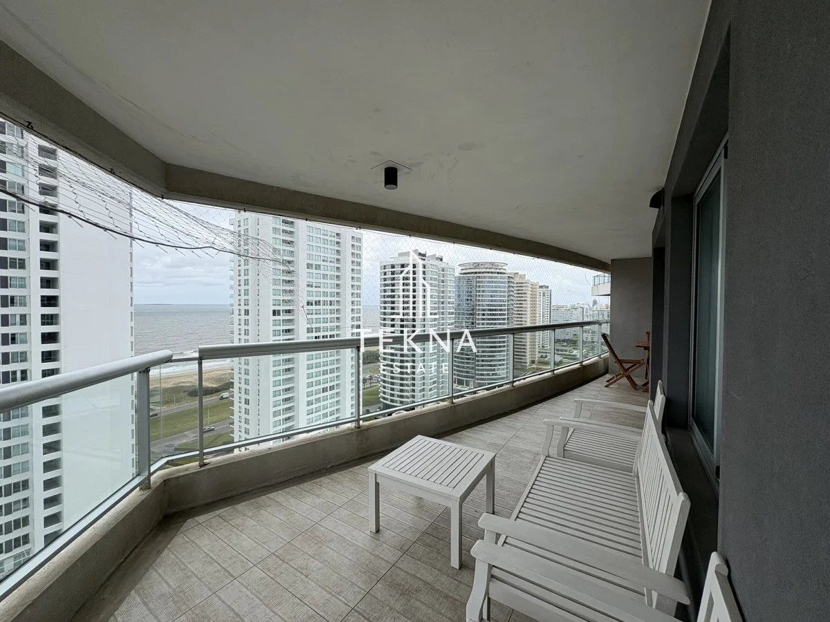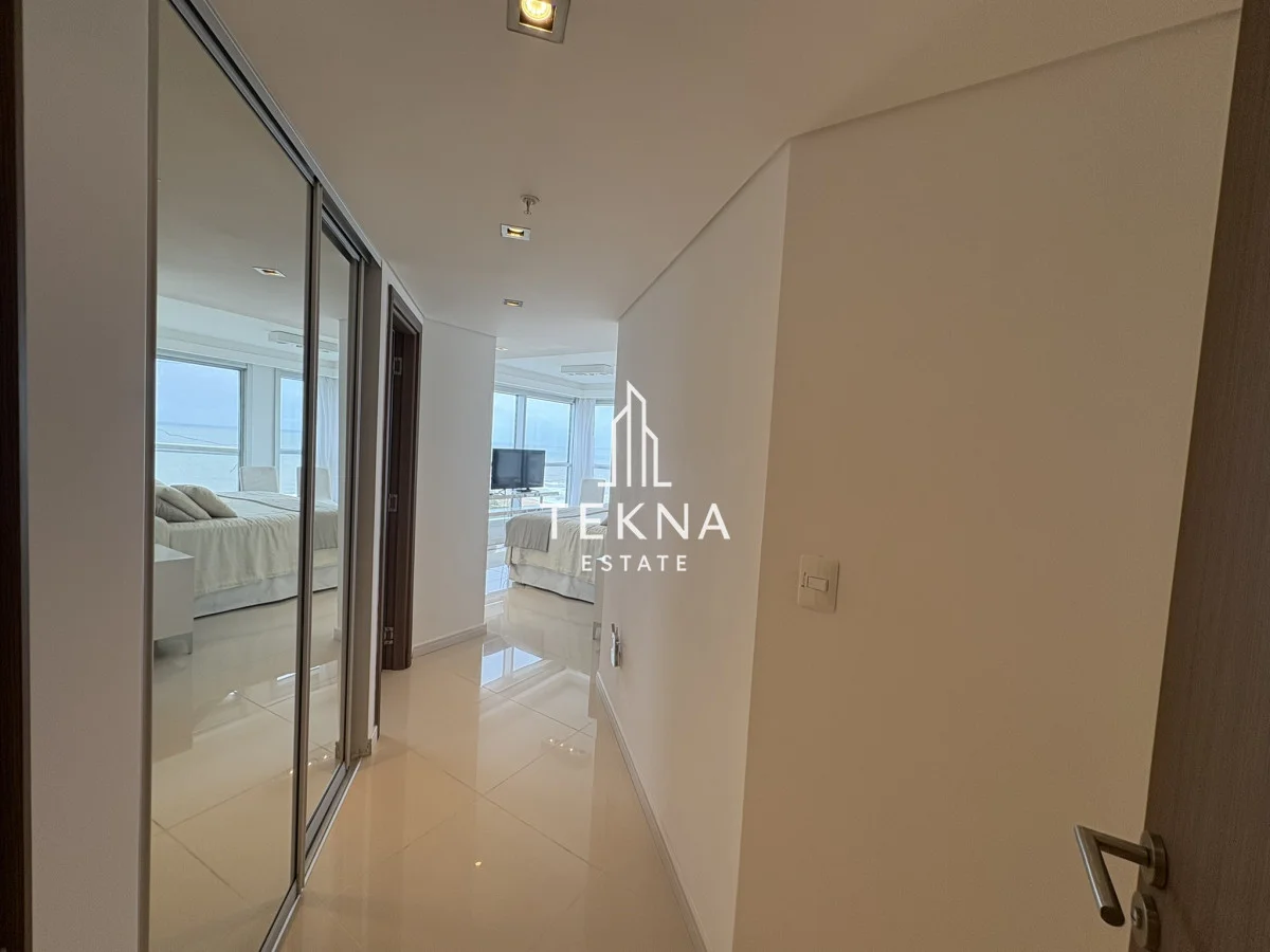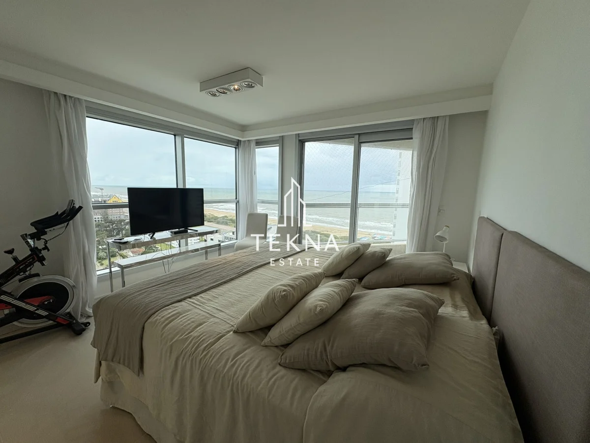 Esta ubicado en la parada 10 de la brava a 100 metros del mar, tiene una vista espectacular al mar y también a gran parte de la ciudad, cuenta con tres dormitorios y dependencia, cuatro baños, cocina definida y un living comedor amplio. Ademas su amplio balcón incluye también parrilla propia con vista al mar. La unidad cuenta con doble garage, super cómodo para familias grandes