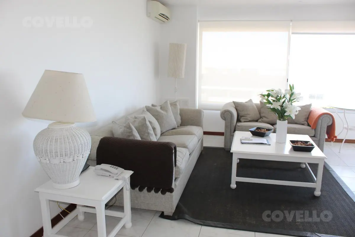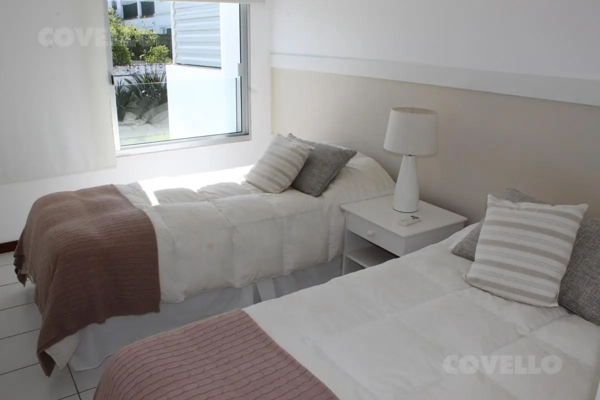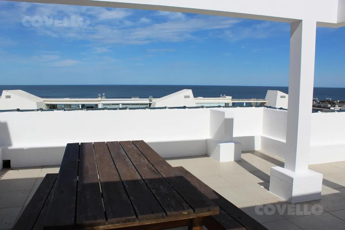 3 dormitorios en suite, living comedor, cocina, lavadero, ropa blanca, azotea de uso exclusivo con vista al mar , piscina central, servicio de mucama, servicio de playa y portero.