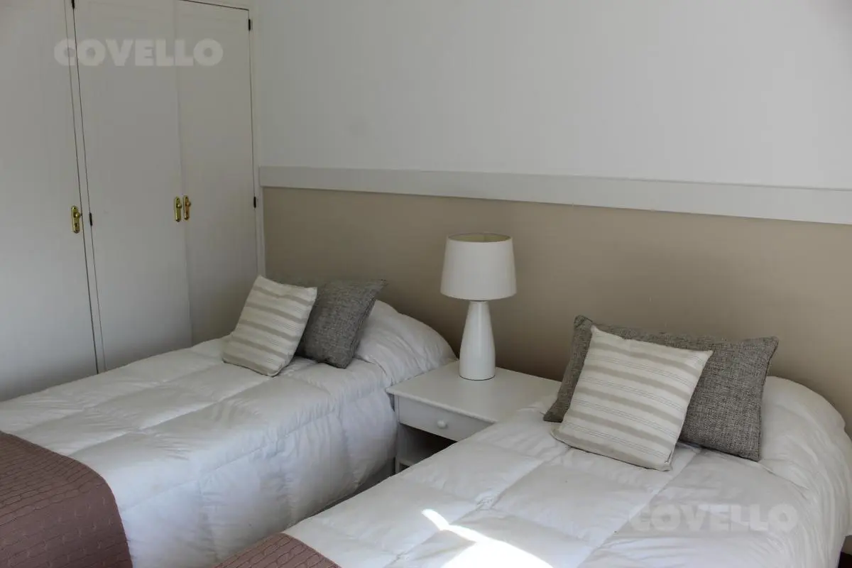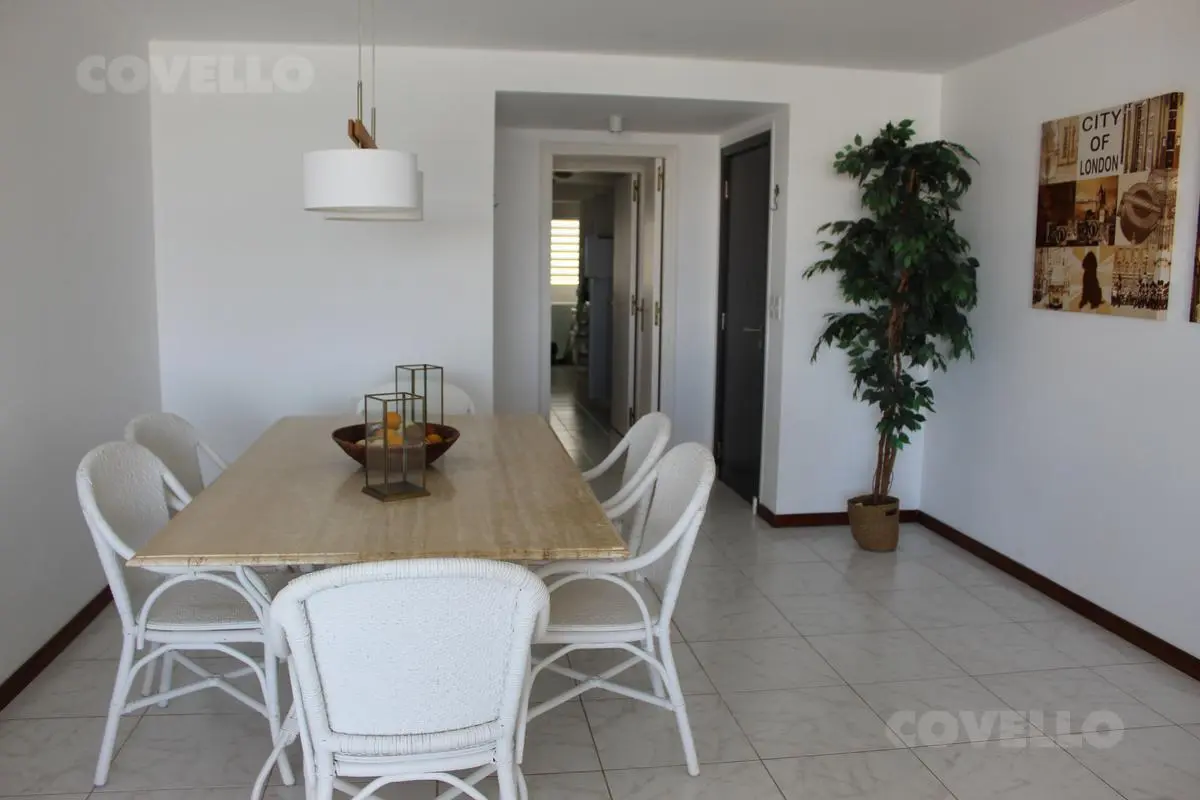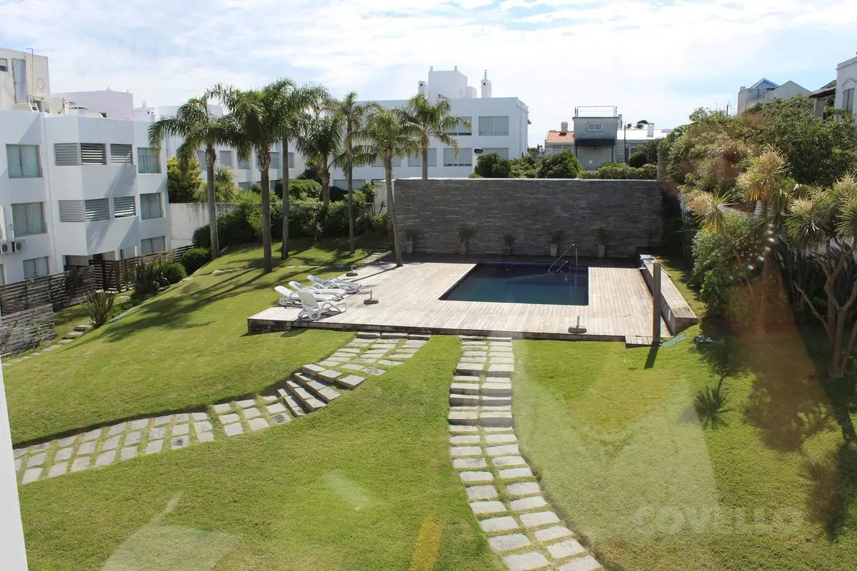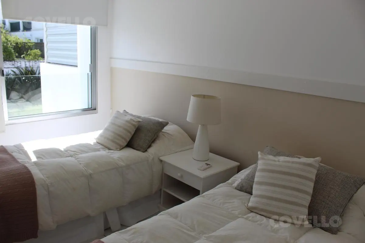 3 dormitorios en suite, living comedor, cocina, lavadero, ropa blanca, azotea de uso exclusivo con vista al mar , piscina central, servicio de mucama, servicio de playa y portero.