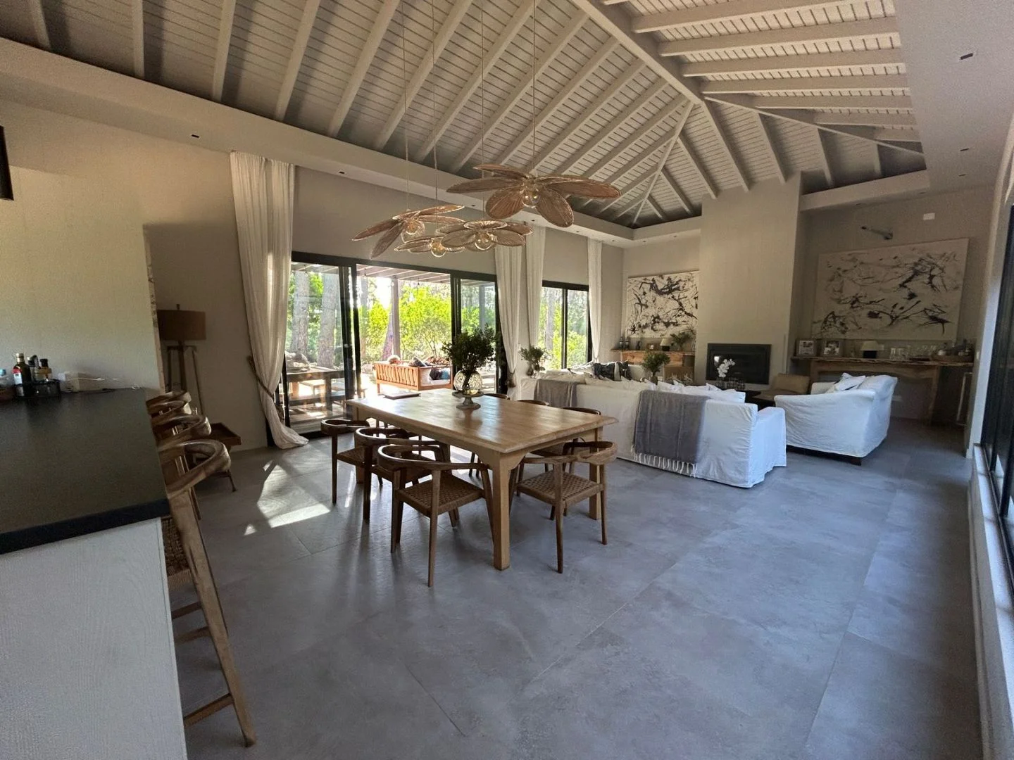 Tiene 4 dormitorios de los cuales 3 de ellos son en Suite. Uno tiene entrada independiente, perfecto para hijos adolescentes. También podria servir como dependencia de servicio.El Living comedor esta integrado a la cocina siendo un ambiente super amplio y luminoso con grandes puertas ventanas que salen a una galería con parrillero y pérgola techada. Los techos altos de la casa aportan también a esa sensación de amplitud.