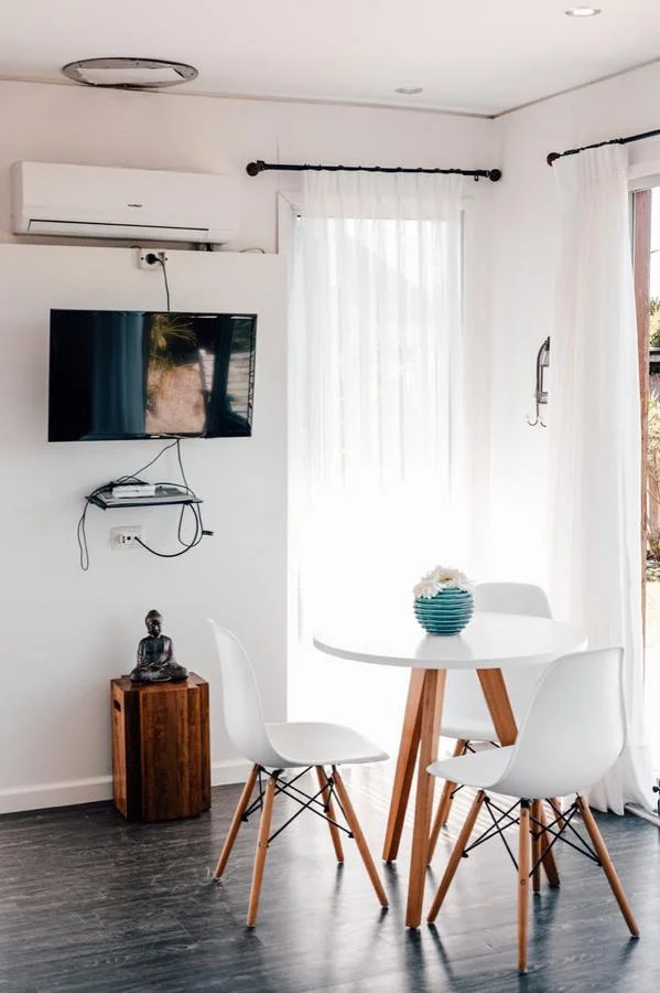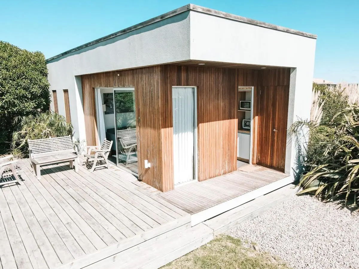 Preciosa casita estilo loft a metros de la plaza, en el casco de Jose Ignacio. 1 dormitorio, 1 baño, living comedor y cocina. Deck con sillas y mesa. Jardin. Estacionamiento para auto.