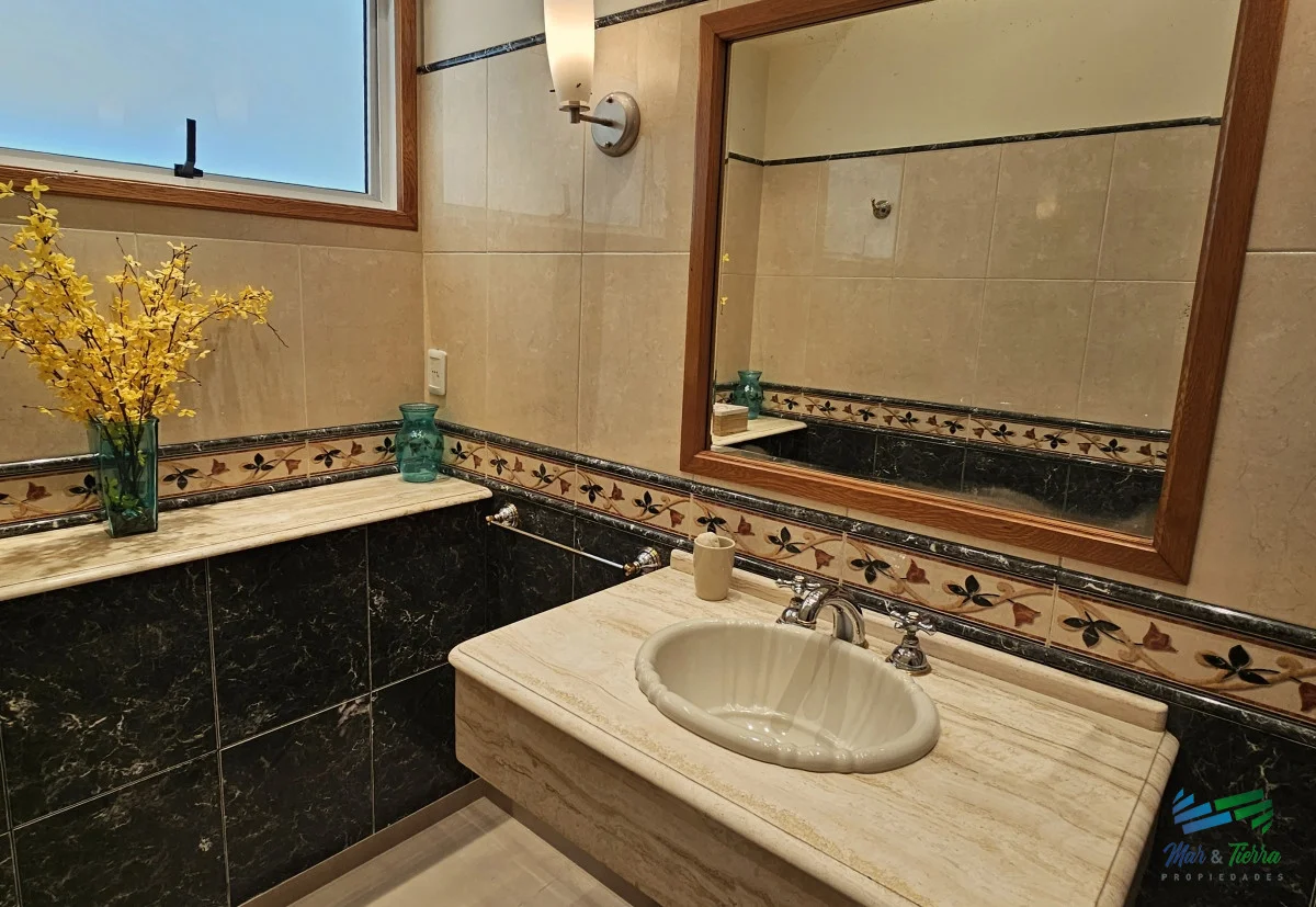 La misma consta de 5 dormitorios, 2 de ellos en suite, mas servicio, amplio living, cocina, gran barbacoa cerrada con parrillero, sala de juegos (pool, ping pong, etc.) Amplio jardín, fondo totalmente cerrado, riego automatizado.