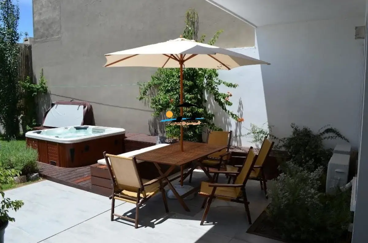 Cuenta con amplio y luminoso living-comedor con estufa a leña,cocina completa ultra equipada,2 dormitorios,2 baños,patio con jacuzzi cercado y enjardinado y cochera al frente.
