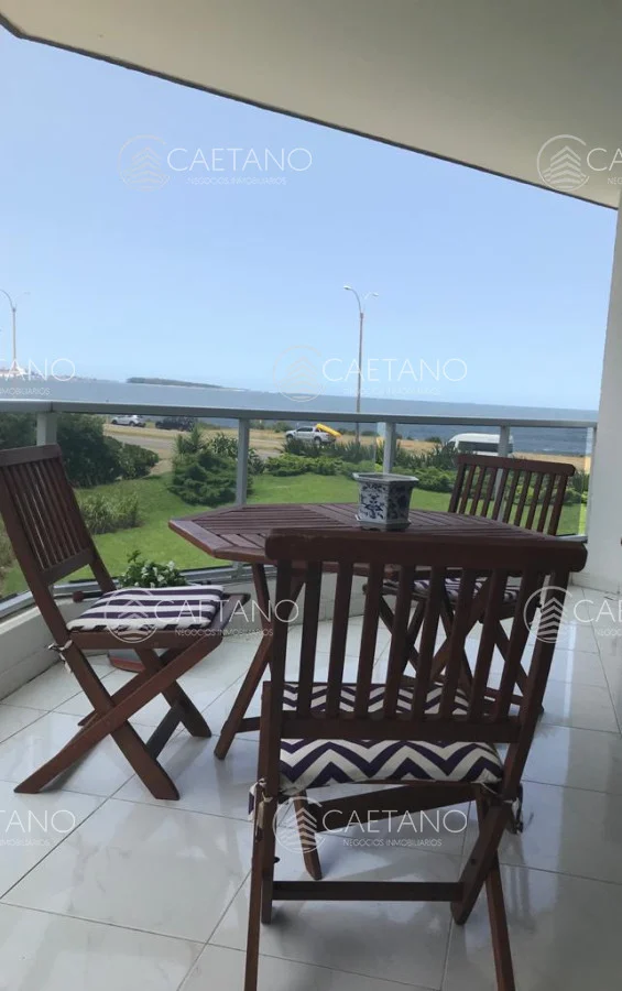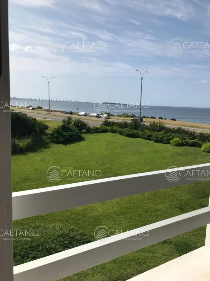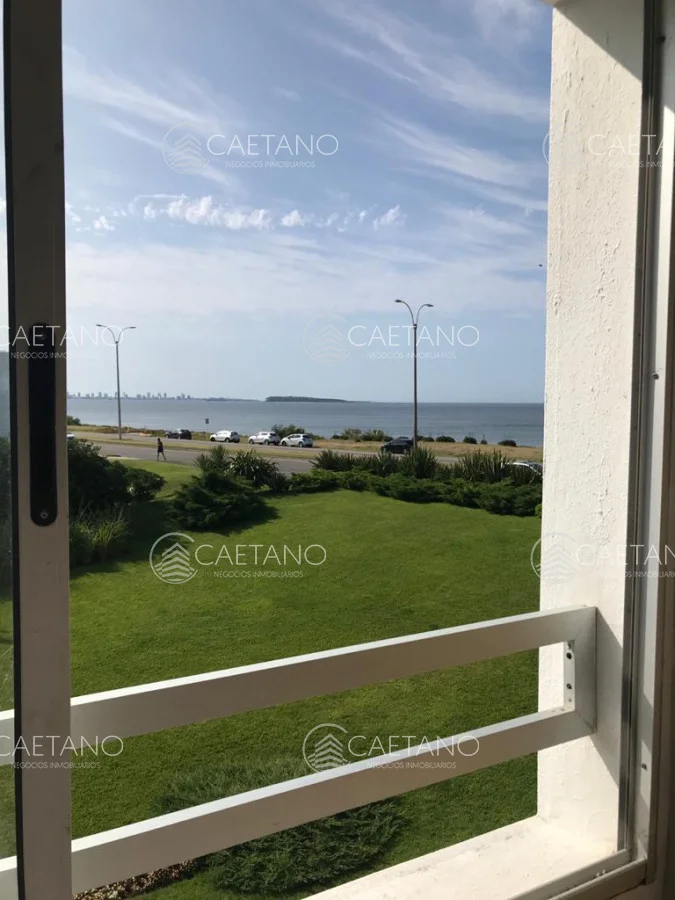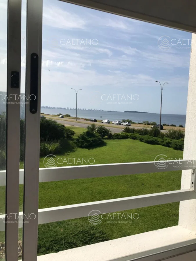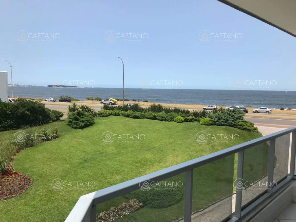 Hermosa planta en edificio en primera línea, gran living comedor con salida a terraza con vista al mar, toilette, 3 dormitorios, 2 baños (1 suite), cocina definida, cochera. Edificio con servicios.