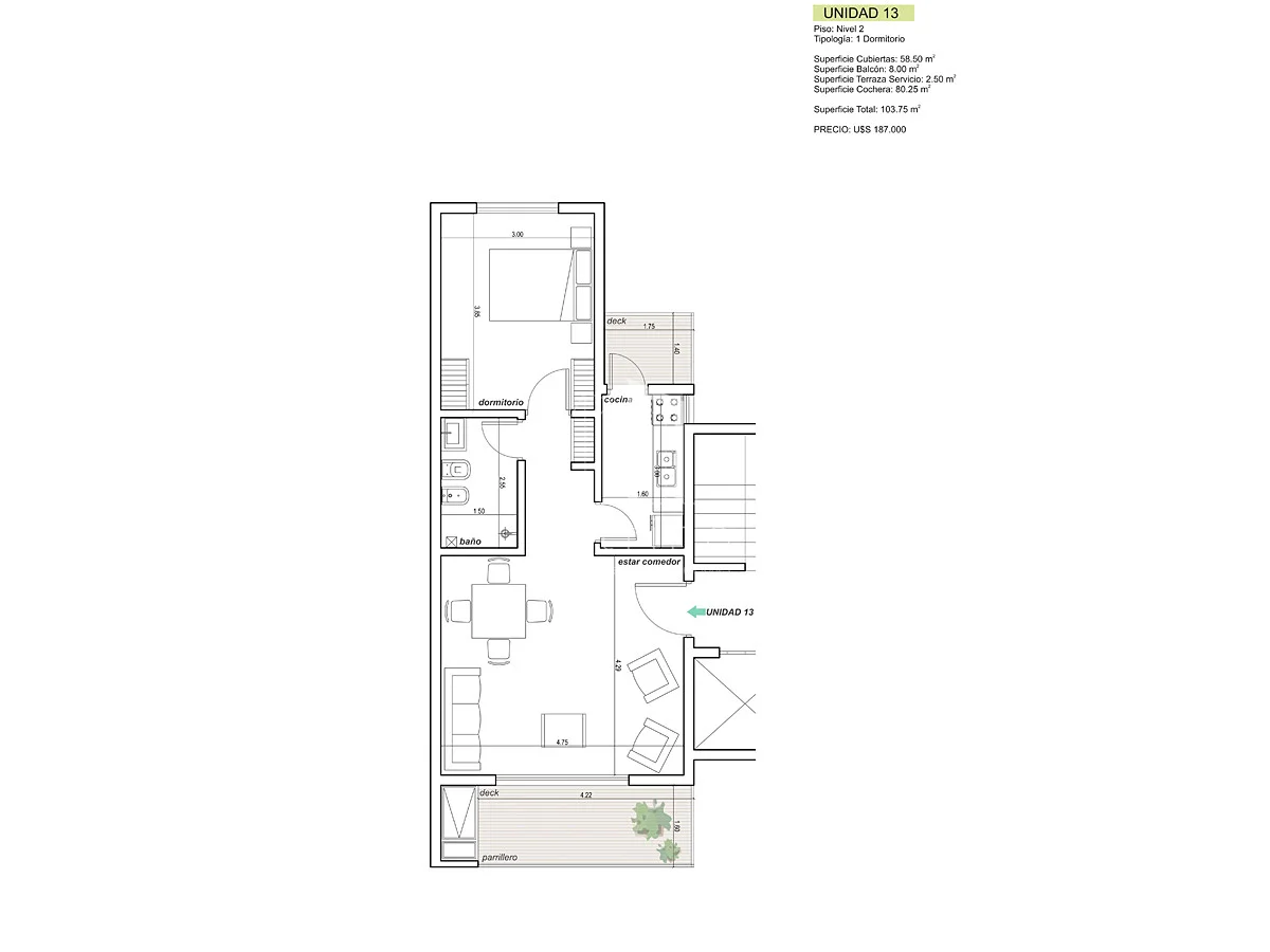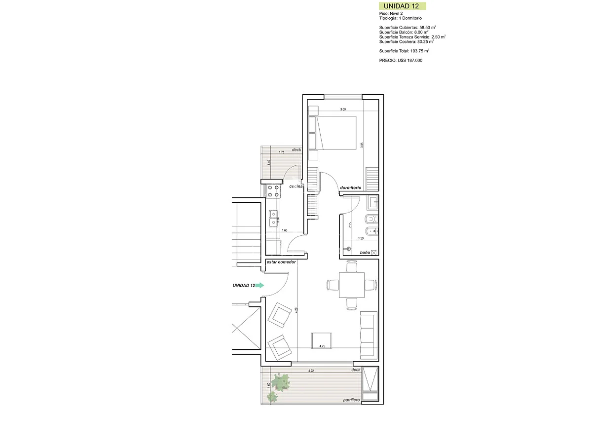 Còmoda planta de 2 dormitorios y 2 baños, cocina con balcón