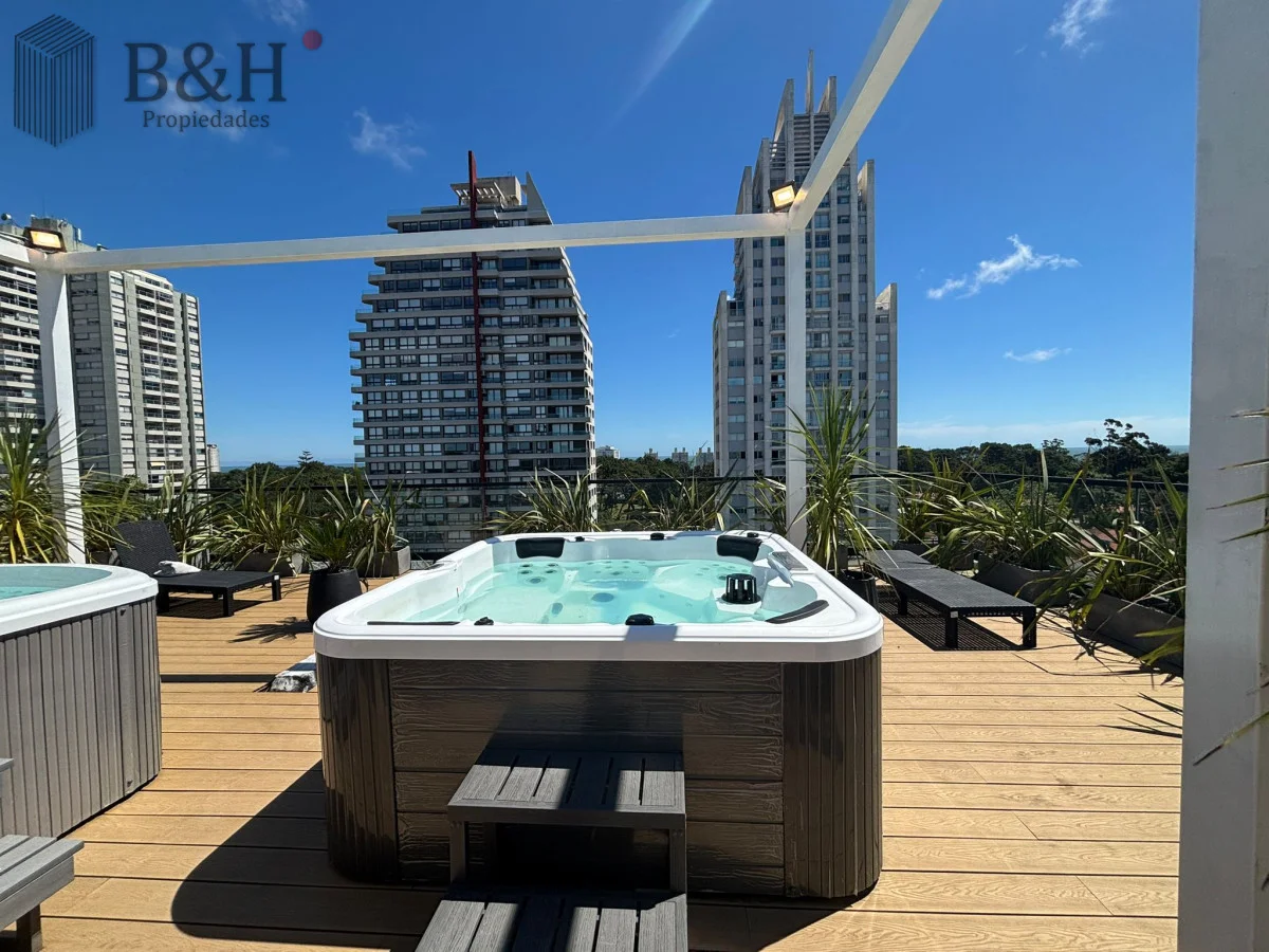 Cocina : Americana, Living Comedor, parrillero exclusivo del apartamento, jacuzzi exterior