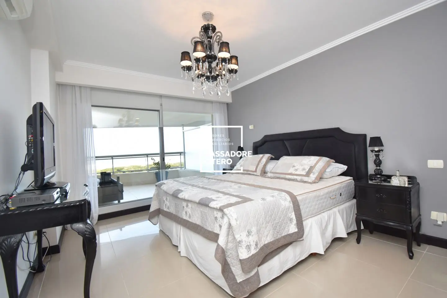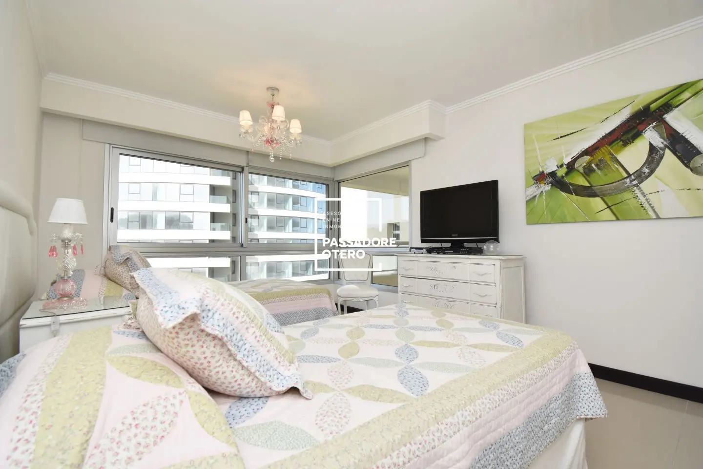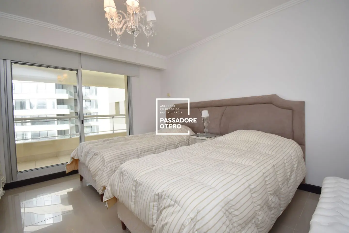 Apartamento de 3 dormitorios + servicio, amplio living comedor, cocina con terraza lavadero auxiliar. Garaje para 2 autos. Todos los servicios que pueda imaginarse se encuentran en Torre Lobos, en la zona de la Brava. Sistema de seguridad, vigilancia 24 hs, ascensores, salones de uso múltiple, gimnasio, piscina exterior, piscina interior climatizada, spa con sauna seco, húmedo, hidromasaje, Area de Relax, Sector exterior de juegos para niños, Barbacoas, canchas de tennis, cancha multiuso, snack bar, business center, Room Theatre y más... (Alquiler + Expensas)