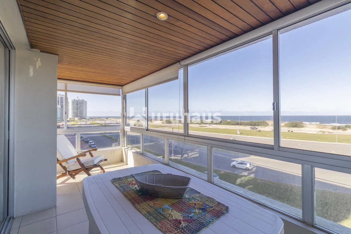 Ubicado en primera línea de la playa Brava, el edificio Alborada ofrece una unidad excepcional de 115 m² totales y 94 m² propios. Esta unidad presenta un amplio living comedor, espacioso y luminoso, con salida al balcón que ofrece vistas impresionantes. La cocina definida, equipada con un lavadero, es funcional y perfecta para disfrutar de la comodidad del hogar.