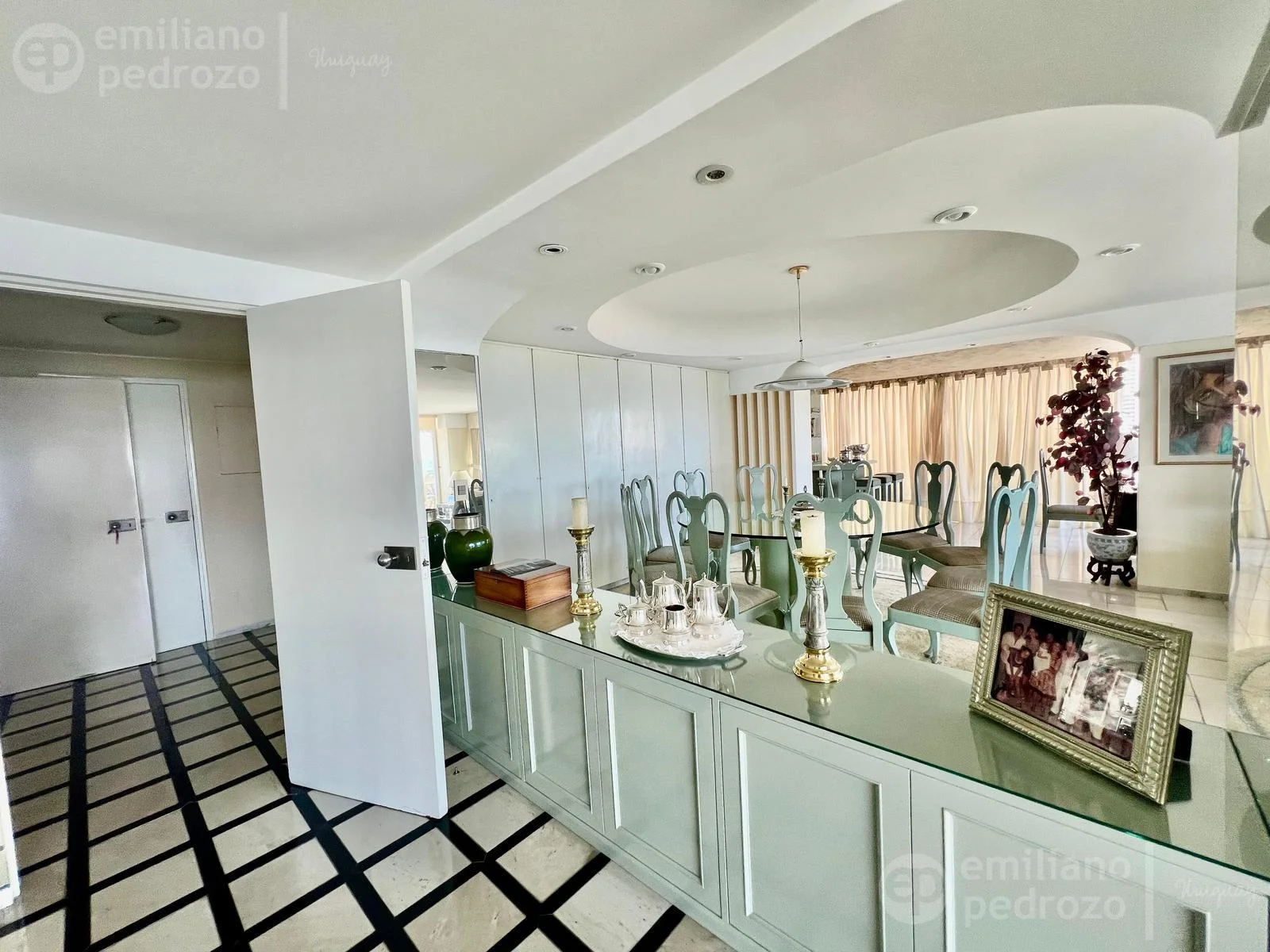 Gran apartamento en una torre de categoría con amplios ambientes que incluyen un cómodo living, comedor principal y secundario, y un balcón terraza con vista al mar. Cocina muy cómoda con terraza lavadero, toilette y dormitorio principal con vestidor y baño en suite, además de dos dormitorios secundarios con baños en suite y dependencias de servicio. Su ubicación es inmejorable, cerca de todo lo necesario para una vida cómoda y placentera.